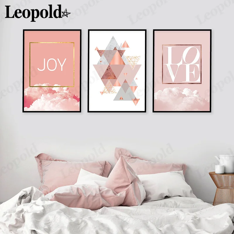 Современная мода розовый буквенный любовь холст плакат медь Роза простая Геометрическая краска...