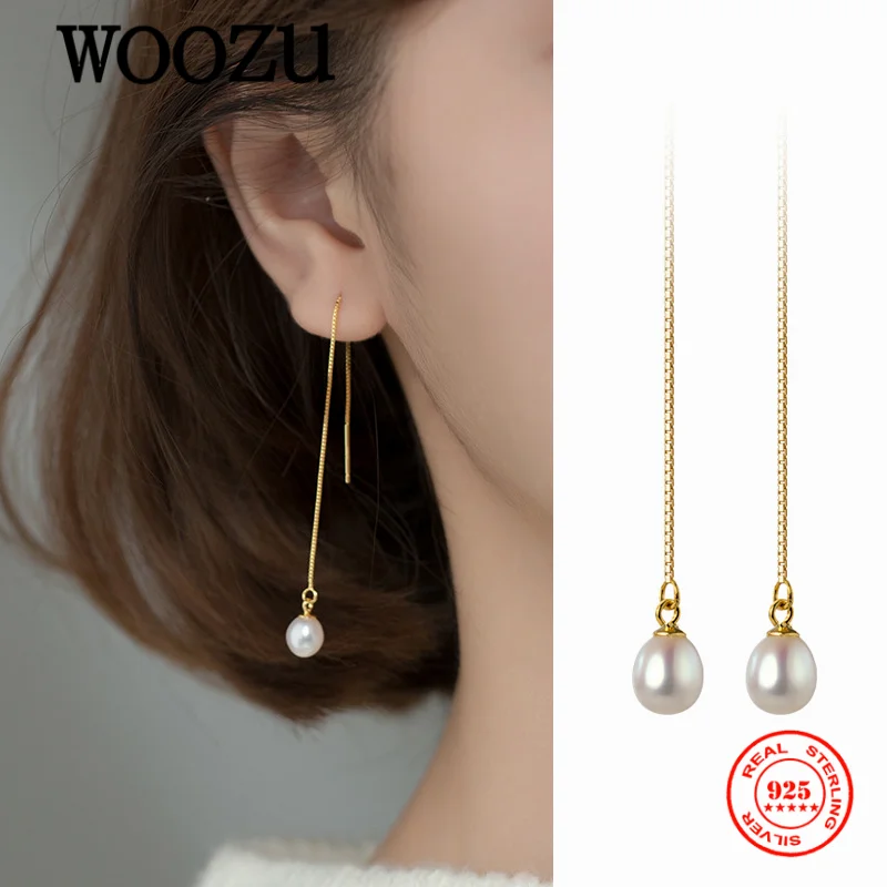 WOOZU подлинной стерлингового серебра 925 натуральный барокко жемчужная Ушная линейка для женщин вечерние модные 18-каратные литые золотом серьги, ювелирные изделия в качестве подарка