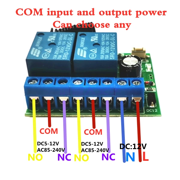 Подключите COM к источнику питания с помощью DC12V, выходной контакт создаст сигнал DC12V. Пожалуйста, проверьте приведенную ниже схему для лучшего понимания.