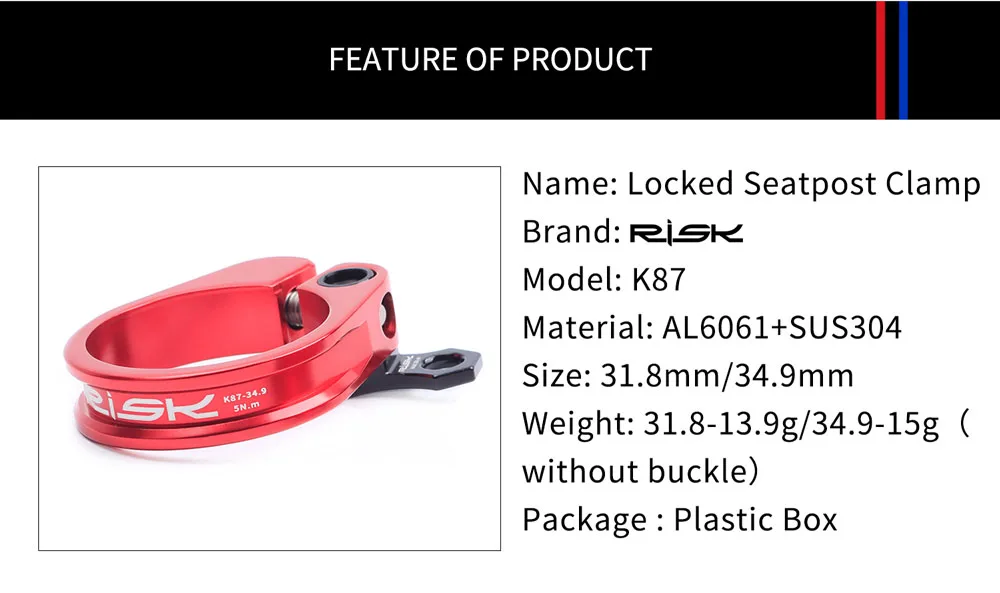 * Материал: алюминиевый сплав* Размер: 31,8/34,9 мм* Цвета: красный, черный, синийЧерез Диаметр Подседельный штырь, введена соответствующая Спецификация зажимов Подседельный штырь.31,8 мм зажимы для подседельный штырь подходит для 27,2/28,6 мм подседельный штырь34,9 мм зажимы для подседельный штырь подходит для 30,8/30,9/31,6 мм подседельный штырь