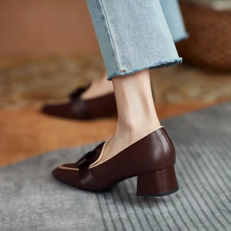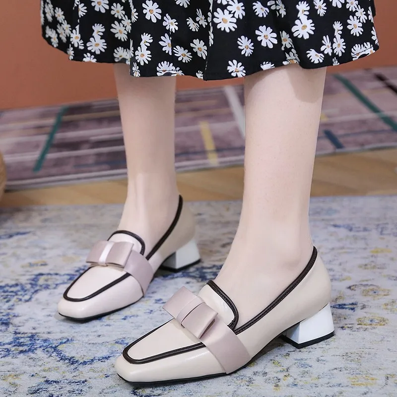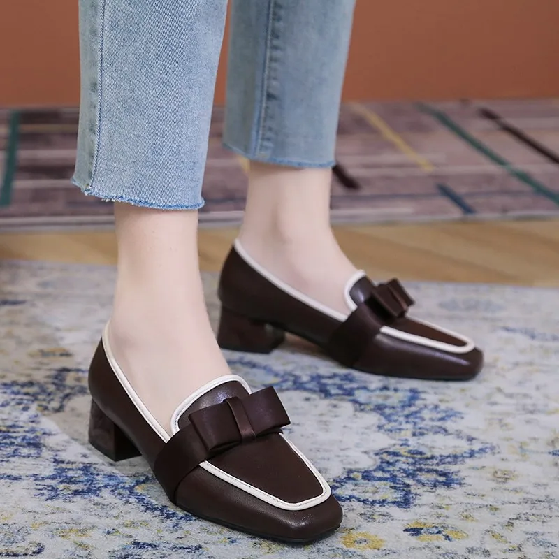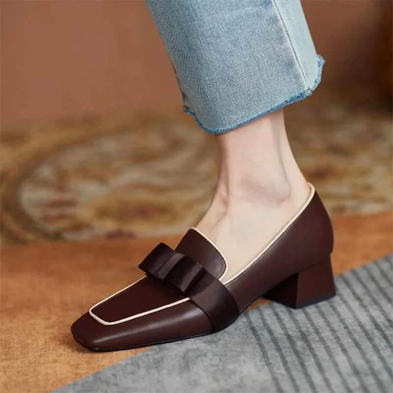 Женские лоферы на плоской подошве, демисезонные, с бантиком, кожаны...