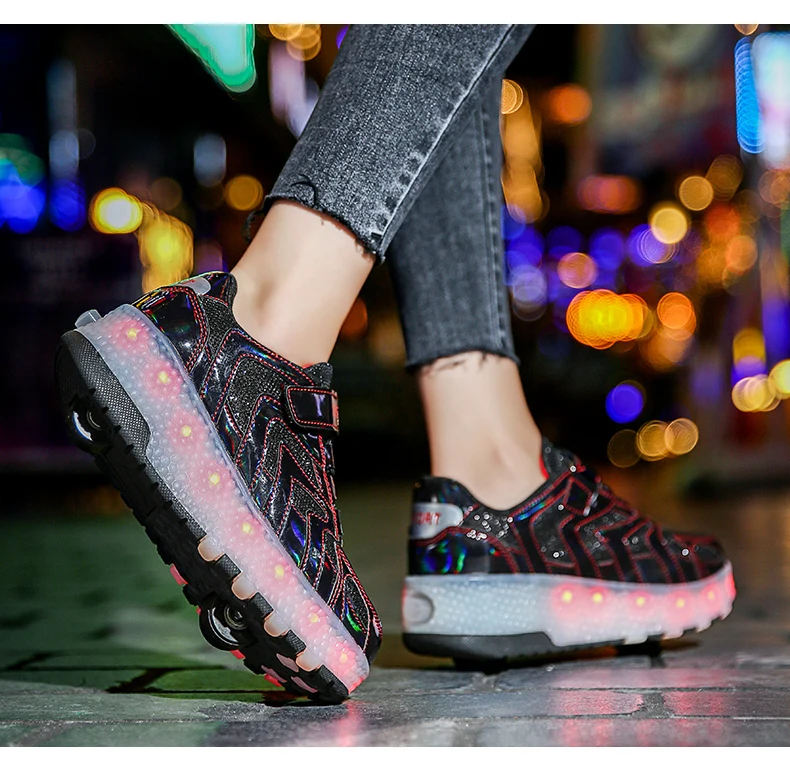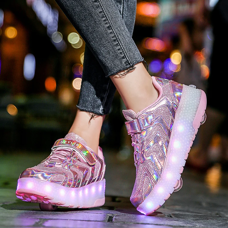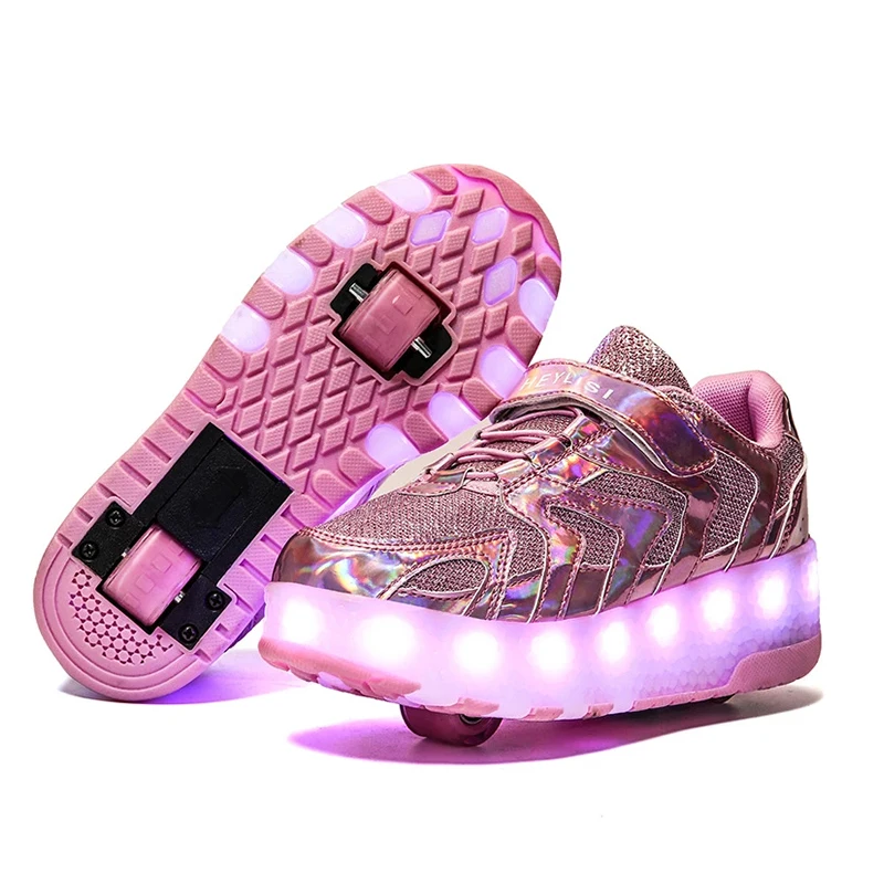 Кроссовки Детские светящиеся, с 2020 обувью, колеса роликовые коньки, для мальчиков и девочек, туфли со светодиодной подсветкой