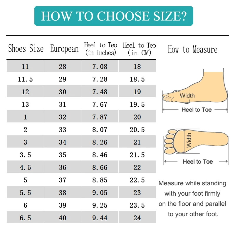 Как только вы узнаете размеры вашей стопы, пожалуйста, обратитесь к таблице размеров ниже, чтобы определить, какой размер вам следует приобрести.