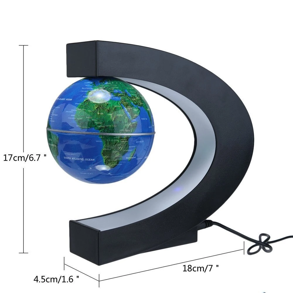 Плавающий глобус мира, меняется несколько цветов, для ночного обучения и светильник в темной комнате.3 "Глобус мира антигравитационный C-образный Настольный Декор цветная лампа с подставкой, магнитная левитация Плавающий глобус Карта мира, обратите внимание,Образовательные Подарки для подростков/взрослых, украшение для домашнего/офисного стола, подарок на день рождения, который позволит взрослым, подросткам и взрослым познавать мир более увлекательно; Идеально подходит в качестве Рождества, дня рождения, или в любое время присутствует для всех возрастов.Бесшумный: нет никакого шума от нашего антигравитационного магнитного глобуса (даже очень тихий шум), кроме других глобусов издаёт низкое шипение при установке шара globe на основание.Стабильность: Магнитный Плавающий глобус плавает стабильность, плавая в воздухе. Обратите внимание: он не вращается автоматически.Он также с генератором отрицательных ионов, может очистить воздух и облегчить давление от работы и жизни.Изменение разных цветовСветящийся Магнитный глобус с антигравитацией, плавающий, левитирующий землю, вращающийся на 360 градусов при прикосновении к нему, обратите внимание: он не вращается автоматически.Как использовать1. Поместите левитационное устройство на абсолютно горизонтальную поверхность. Если поверхность не ровная и ровная, глобус не может нормально левитировать.2. Включите питание.3. Держите бобль рукой и положите белую палочку на основание в качестве подпорки и перемещайте Южный полюс глобуса вертикально вниз по центру основания.4. Заставьте Глобус медленно приблизиться к центру основания и, пожалуйста, Двигайте его влево и вправо, или спереди и сзади, чтобы попытаться получить точку левитации.5. Когда Глобус находится в правильном положении, вы почувствуете сильную силу, удерживающую Глобус. Осторожно Отодвиньте руки, он будет плавать. И Отодвиньте белую палочку.