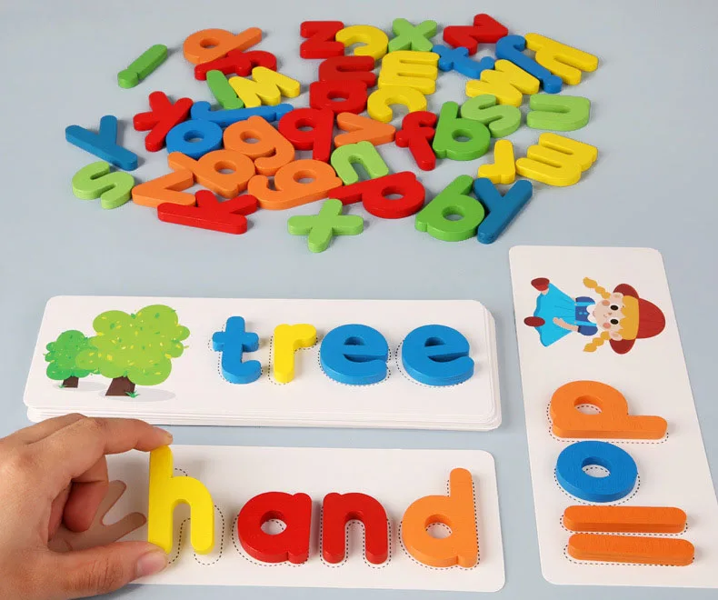 Деревянные игры для правописания, 26 букв, Английский алфавит, Раннее Обучение для малышей, познавательная головоломка Монтессори