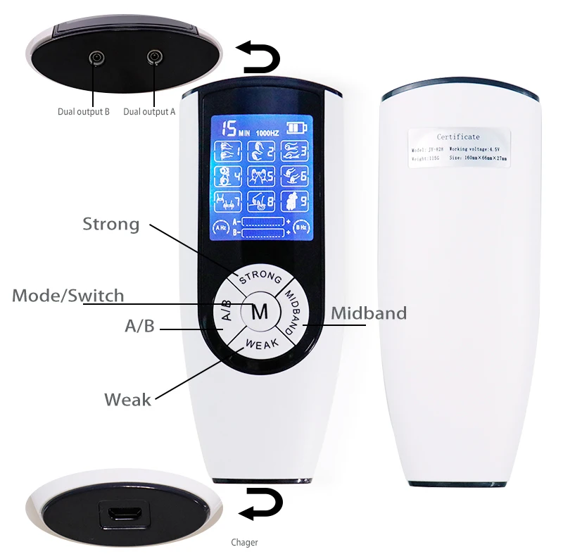 -Удовольствие от электрического удара, глубокое и тщательное. Снятие стресса, удар всего тела, расслабление Меридиан;