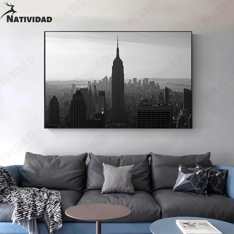 Украшение для дома, современное изображение города, архитектурное искусство, черно-белое...
