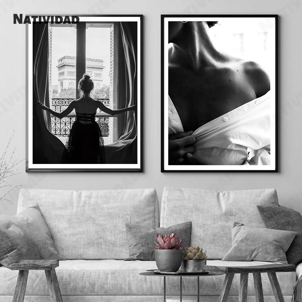 Пара силуэт тела ручной окна картина стены Стикеры Nordic Плакат ст...