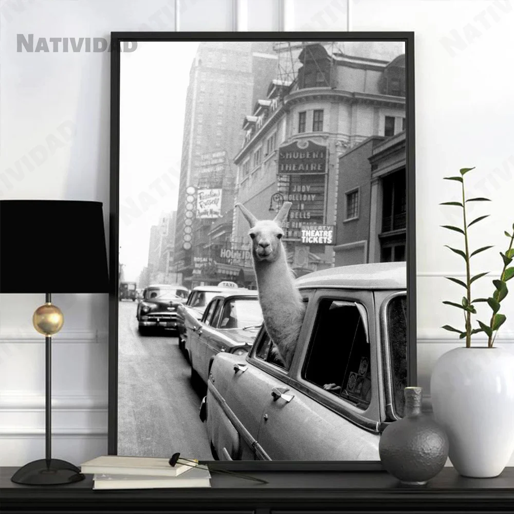 Блок юмористический стиль холст в такси в Нью-Йорк, чтобы сказать привет животным альпак...