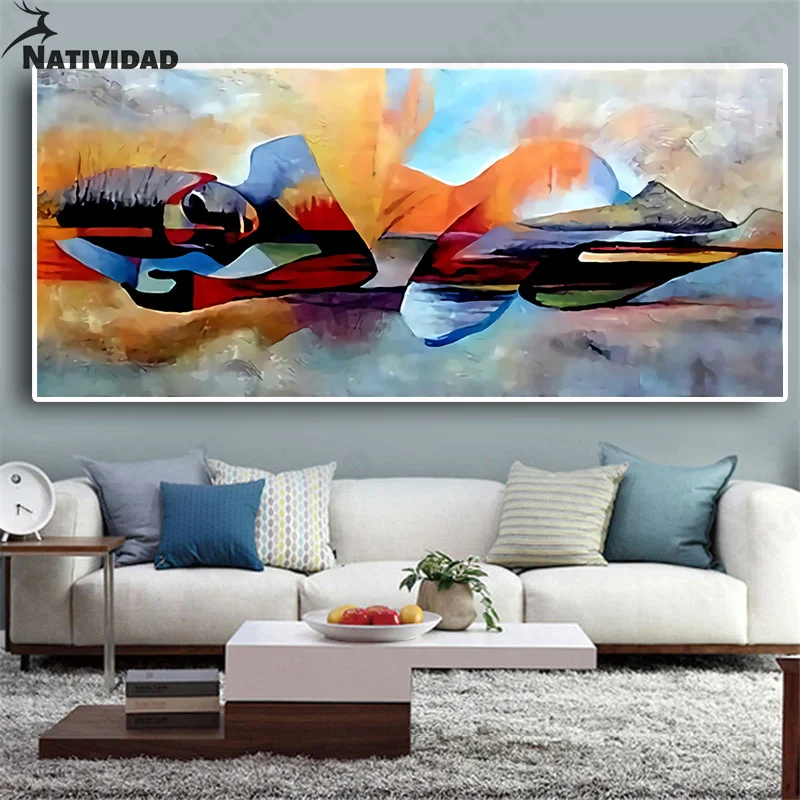 Картина на холсте, украшение для дома, искусство, современный абстрактный цвет, лежа, девушка, узор, ухо...