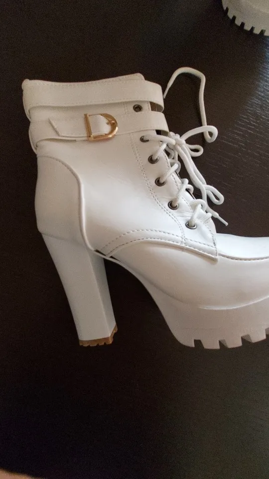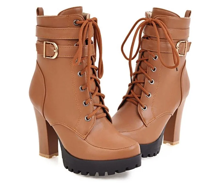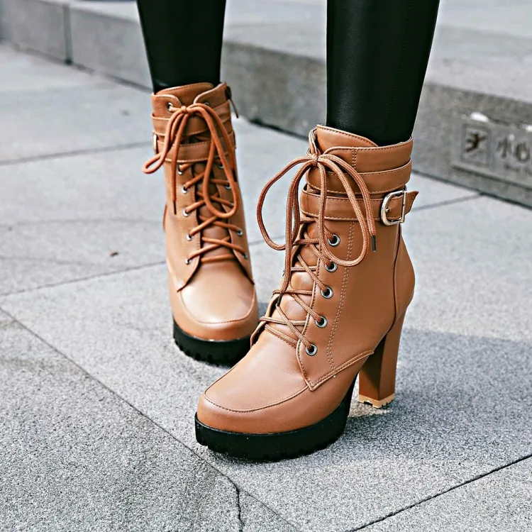 Женские ботильоны на высоком каблуке, ботинки на платформе со шнуро...