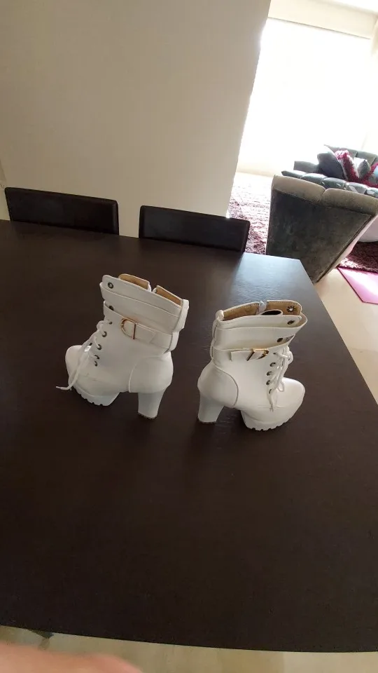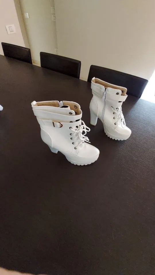 Женские ботинки на высоком каблуке 10 см, Классические ботинки на толстом каблуке, с круглым носком, на молнии, белые сапоги для мамы, Классическая обувь