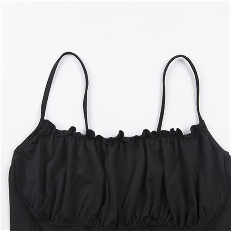 Летний женский модный Повседневный однотонный сексуальный плиссированный жилет на подтяжках без рукавов 2021 кружевной Y2k сексуальный Дамский топ на бретелях Вечерние