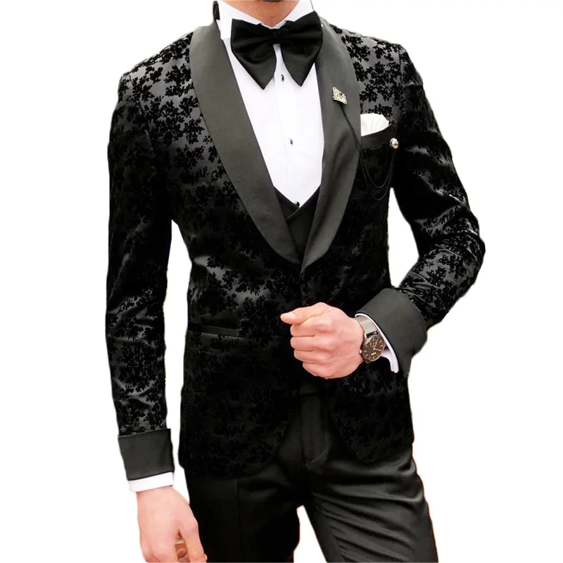 3 шт., черные мужские костюмы, свадебные смокинги, на заказ, Кружев...