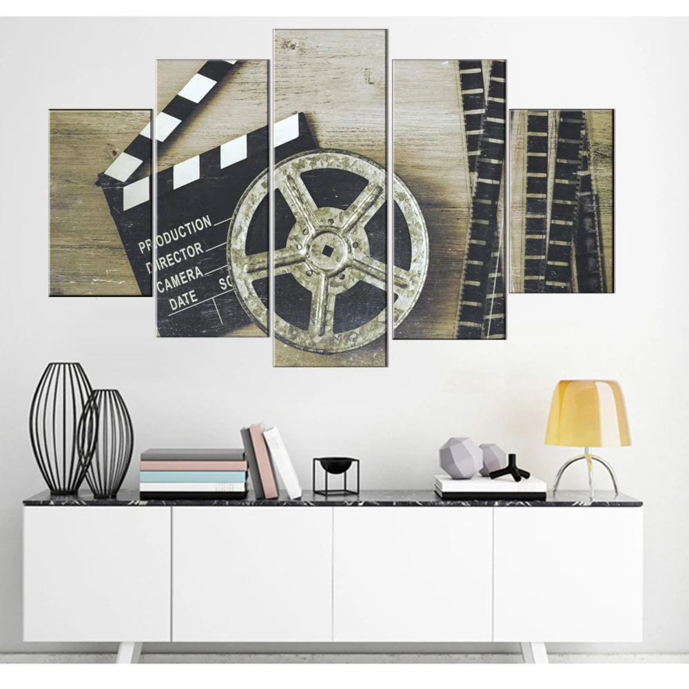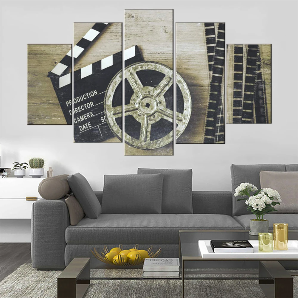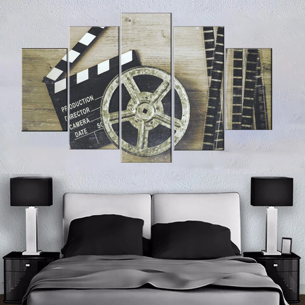 Черно-белые картины, кино, Хлопушка, настенное искусство, 5 шт., холст, кинография, картины, артикул для гостиной, винтажная декорация дома