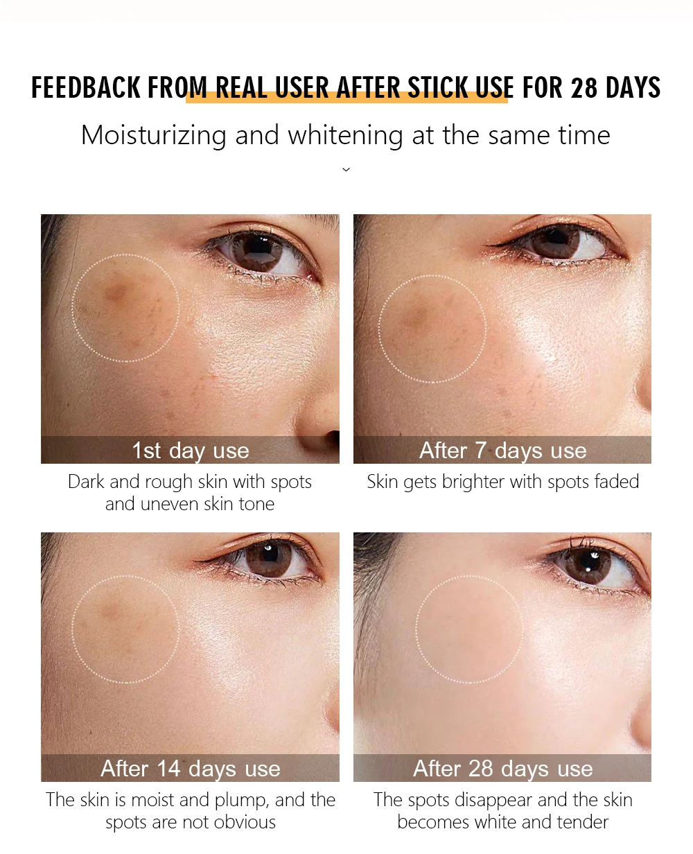 Увлажнение и отбеливание одновременно1 день использованияТемная и грубая кожа с пятнами и неровным оттенком кожиПосле 7 дней использованияКожа становится ярче с потертостямиAfiter 14 дней использованияПятна исчезают и кожа становится белой и нежнойAfiter 28 дней использованияКожа влажная и пухлая, и пятна не очевидны