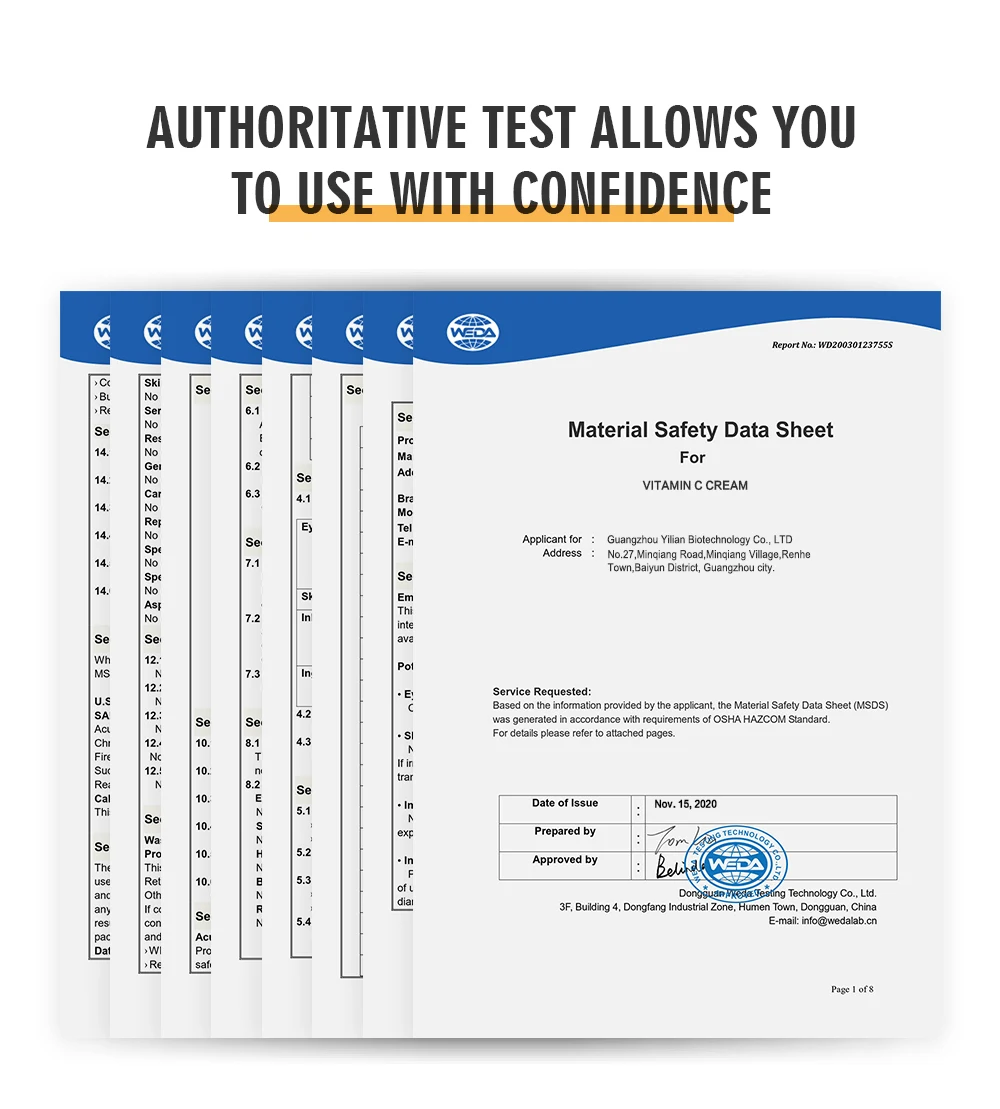 VC-IP-это новый тип стабильного VC, который не легко деактивировать. Сохраняя традиционную высокую эффективность VC, ее легче поглощать без раздражения. Это комплексный ингредиент для ухода за кожей с отбеливающим, анти-кислородным и сопротивляющим светильник эффектом старения.Itamin C, с антиоксидантной защитой, этот продукт может предотвратить образование меланина. Также с такими функциями, как отбеливание и осветление цвета кожи, удаление пятен и меланина, он может восстановить здоровье кожи, способствовать метаболизму кожи и активировать поврежденные клетки кожи, чтобы реторизировать эластичность* Экспозиция яркой гламурной лаборатории: Наука и природа за продуктом
