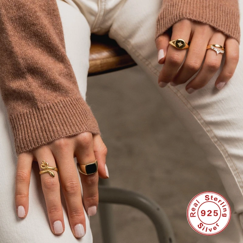 BOAKO золотые кольца в виде змейки Для женщин девочек 925 Серебряное кольцо 2020 трендовые кольца, ювелирные украшения парные кольца минималистский #7,6