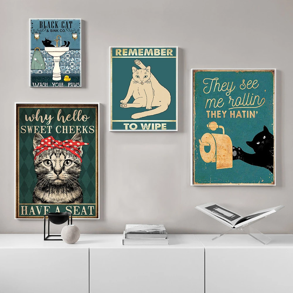 Металлическая черная кошка холст картины винтажные ваши ягодицы сал...
