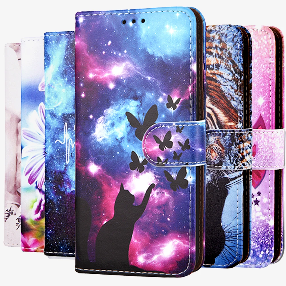 Кожаный флип-чехол для телефона чехол-накладка для Redmi Note 9 9S Pro 9A 9C Fundas 3D чехол-кошелек с отделениями для карт и держателем обложка книги кошка собака окрашенные Coque Капа