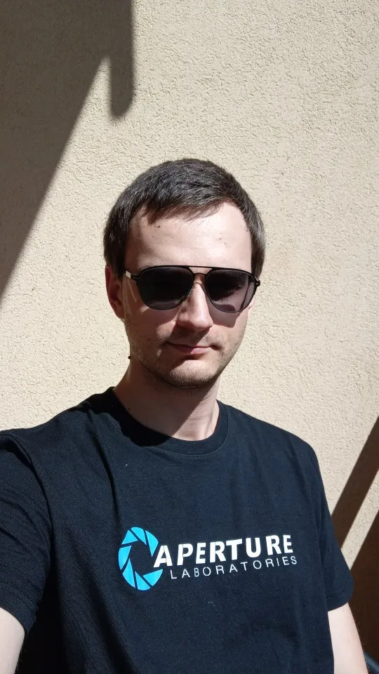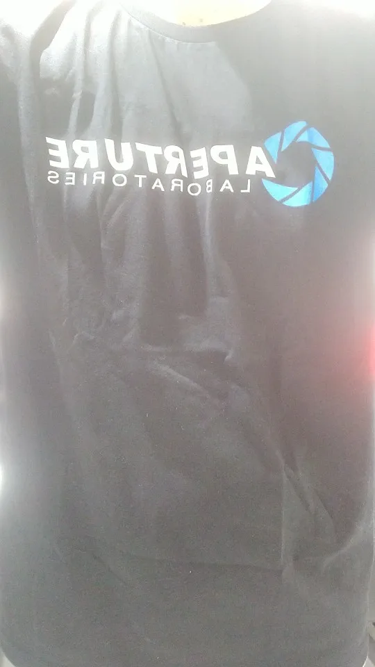 Очень хорошая футболка портала 2, размер никеля для S я рекомендую