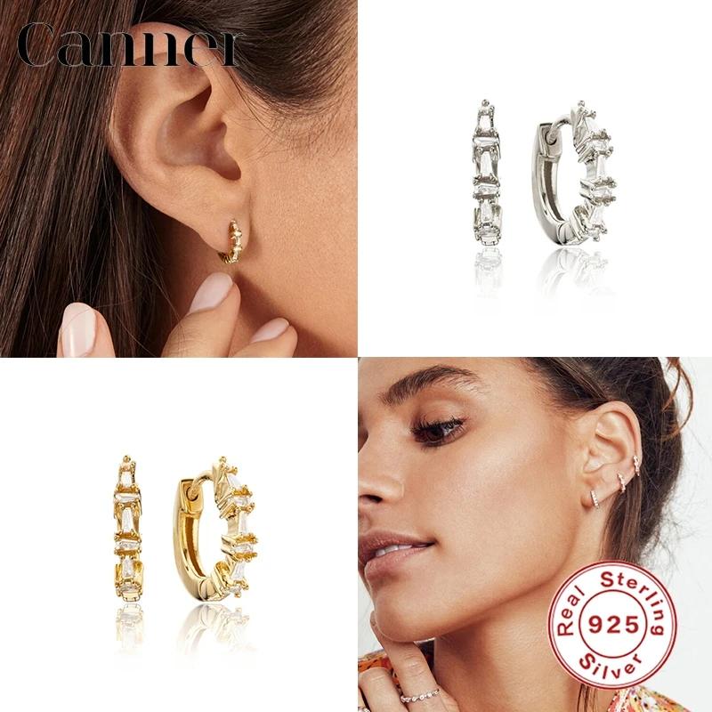 Женские серьги-кольца Canner Huggie, серьги из стерлингового серебра 925 пробы с черным цирконием, ювелирные украшения, W5