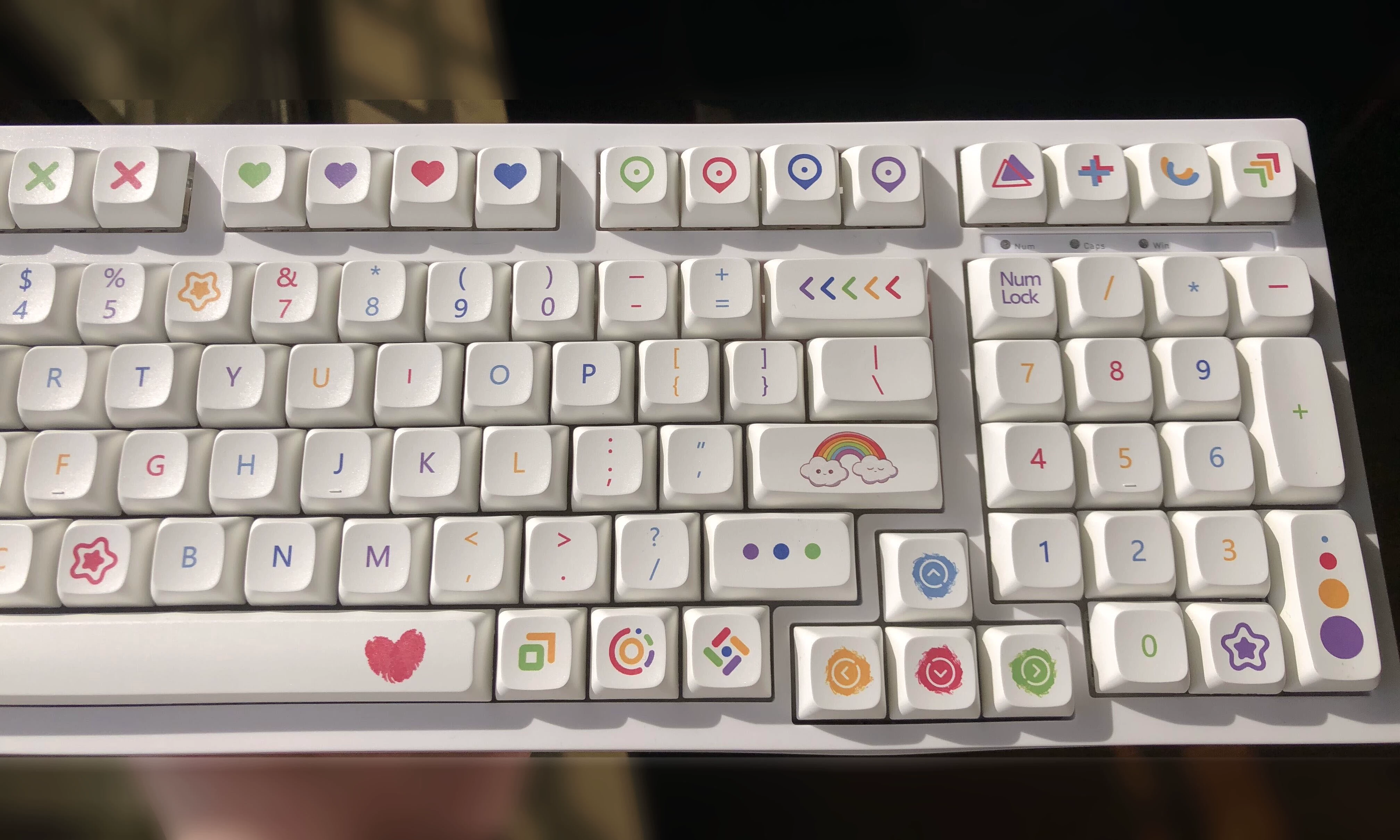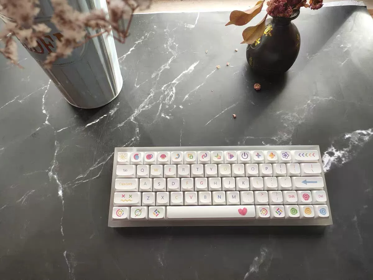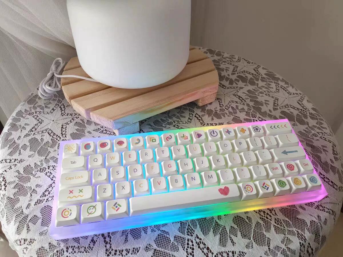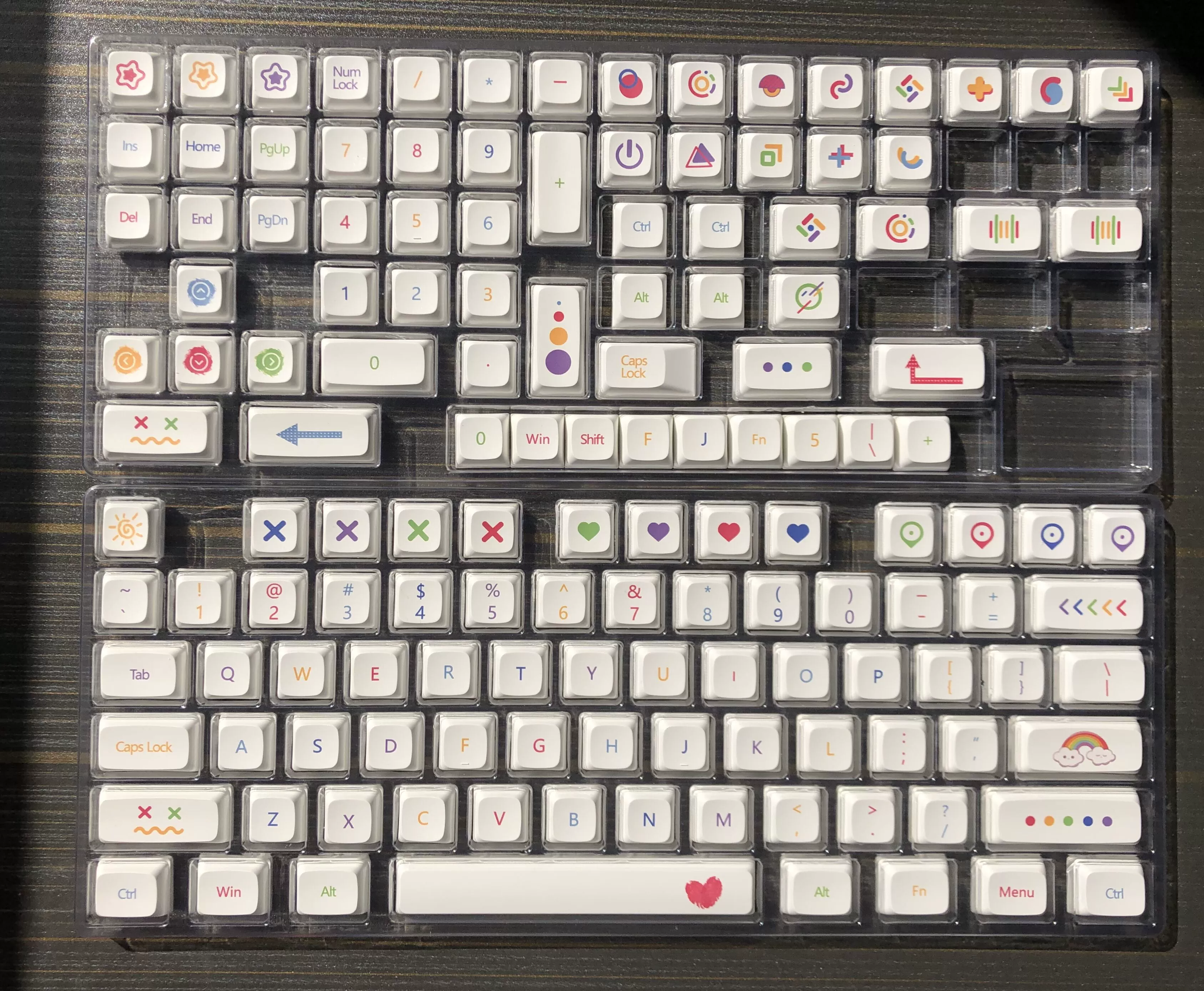 Красиво и довольно толстое. У него много новинок, и мне нравится tht, он имеет 1u shift, alt, win и ctrl. Отлично сочетается с ny niu mini. Печать легенд может быть лучше, хотя она не очень пигментирована, как я хотел бы. Но в противном случае. Выглядит как набор кепок-карандашей NP от kbdfans, но с красочными шрифтами!