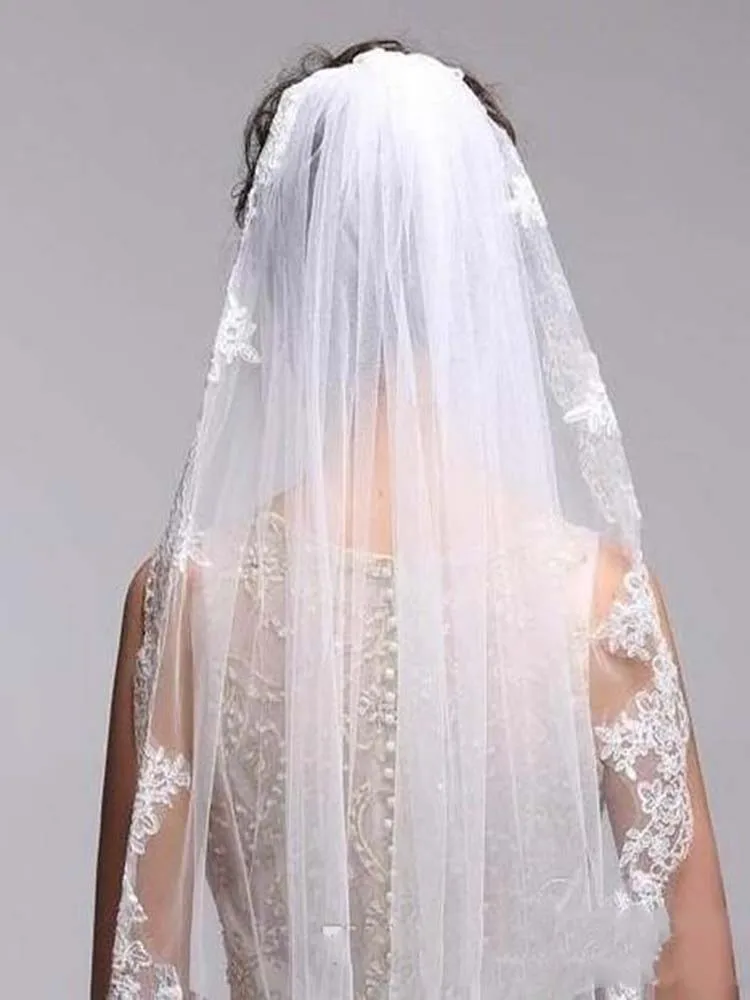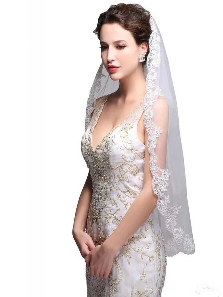 Высокое качество фаты с аппликация Край нажатием Длина один Слои фатиновое белое Свадебная заколка цвета слоновой кости свадебная фата # F177