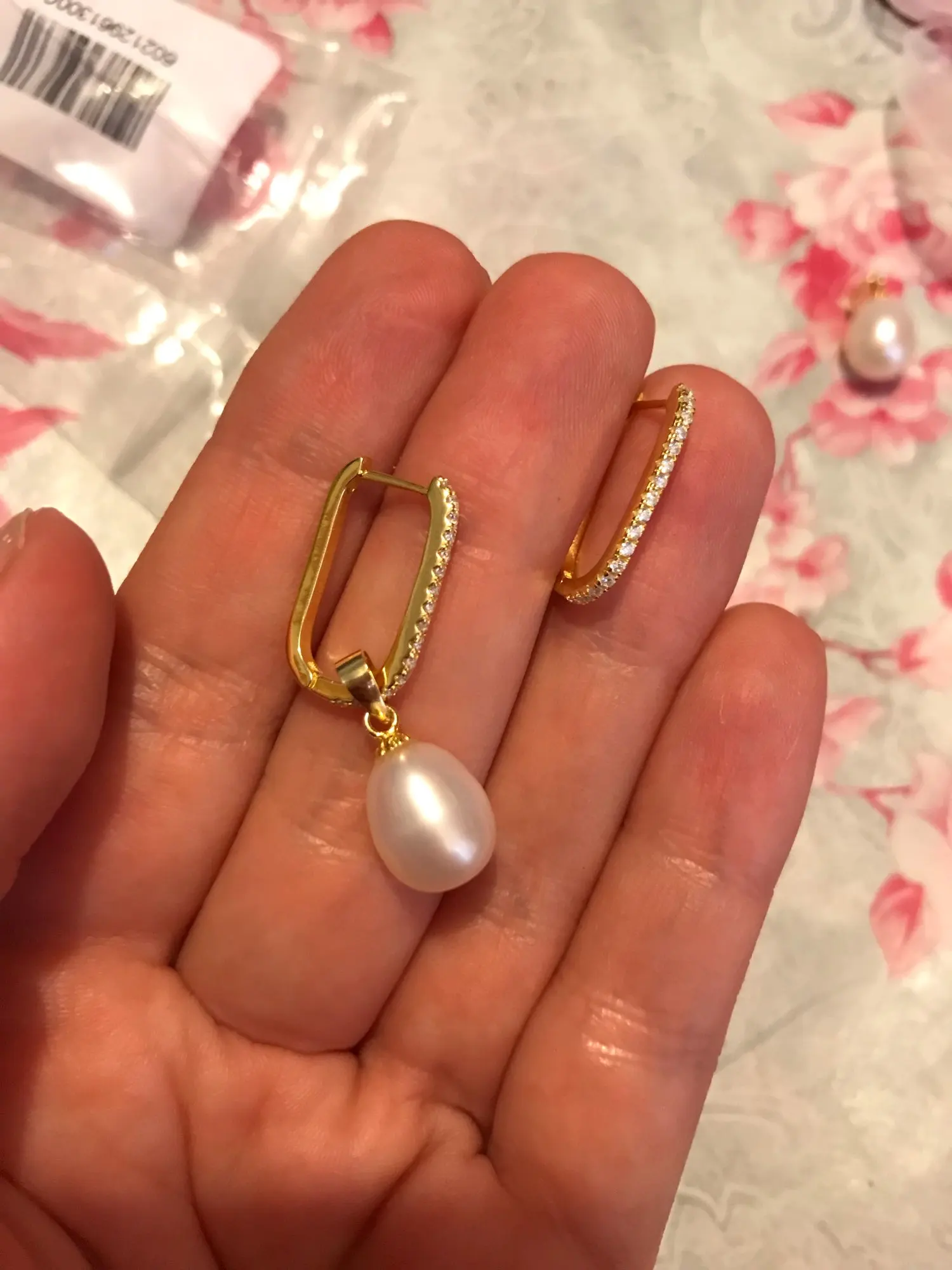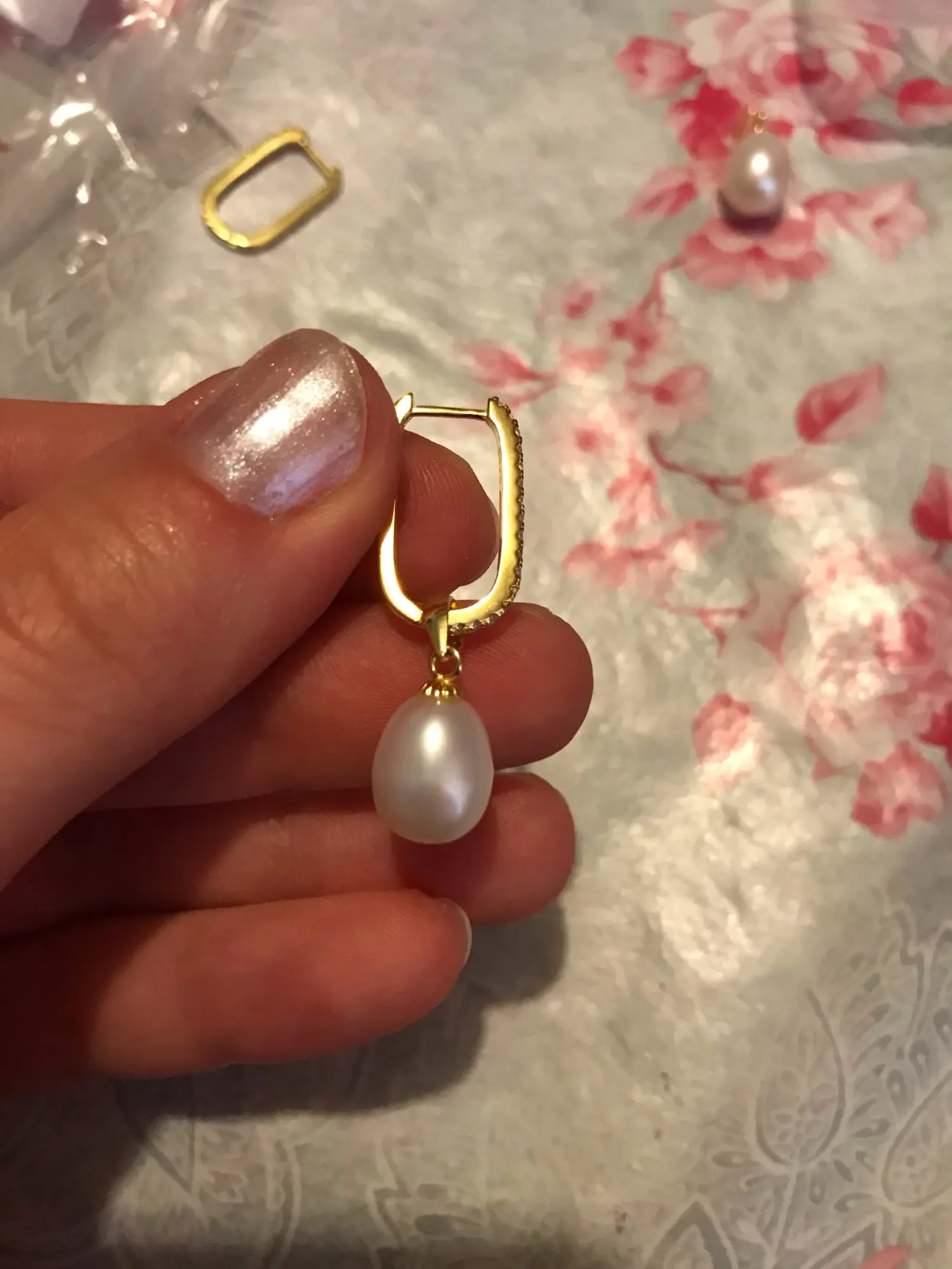 Серьги как на фото, красивые, нежно мерцают фианиты. Но замочки очень слабые и очень мягкий металл. Пока туда-сюда поджимаешь замочки, то серьги могут и вообще сломаться. Но мне необходимо было взять их, так как хотела повесить свои жемчужины на серьги, а на жемчуге металл такой же желтый. Вот и выбрала эти серьги. Но иначе бы не взяла, уж больно хлипкие.