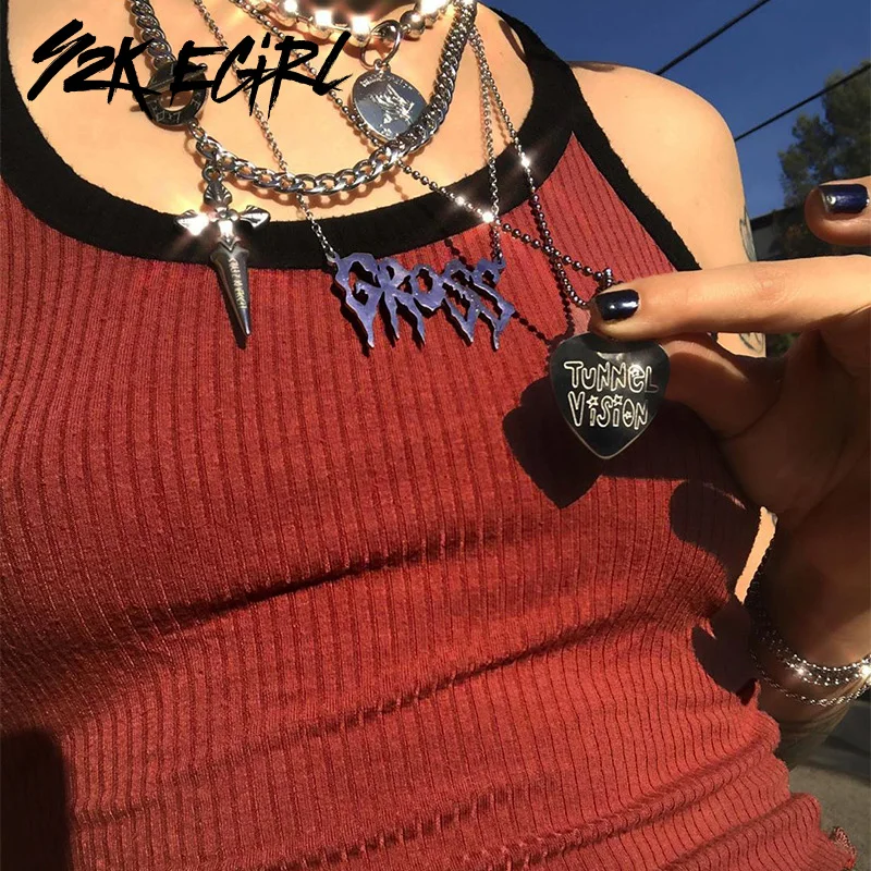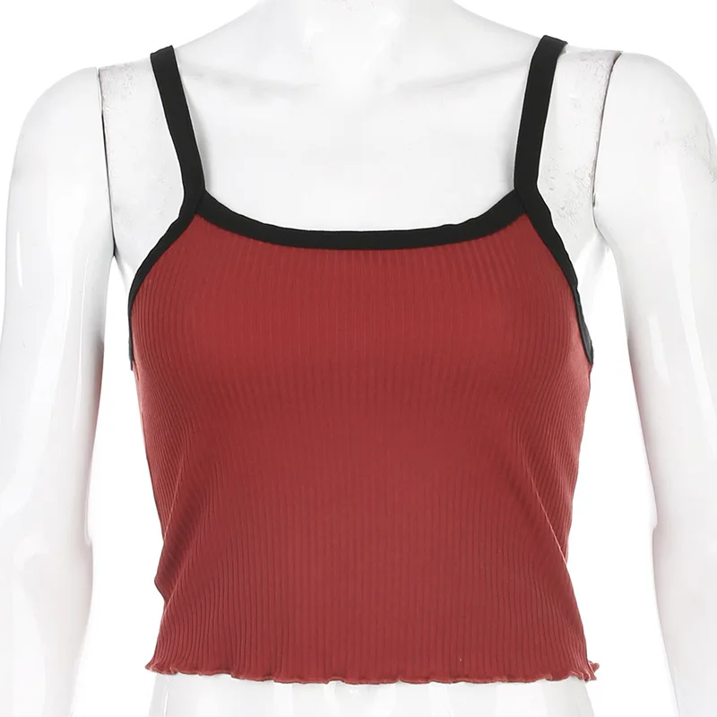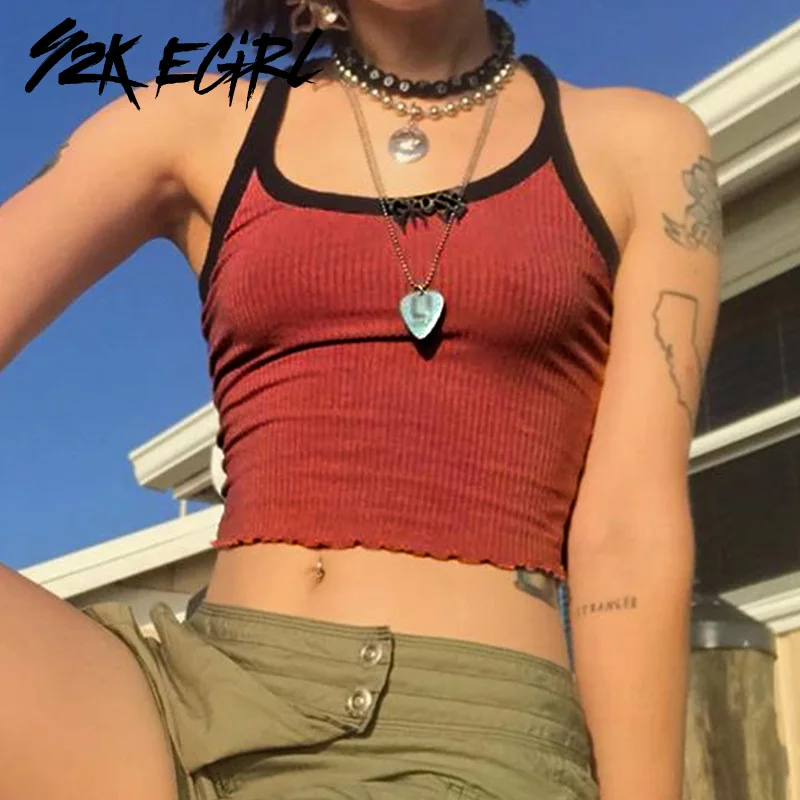 Y2K EGIRL в стиле Харадзюку, лоскутные красные топы с оборками, торговый центр, готические ребристые панковские укороченные майки, гранж-наряды, винтажный топ на бретелях-спагетти