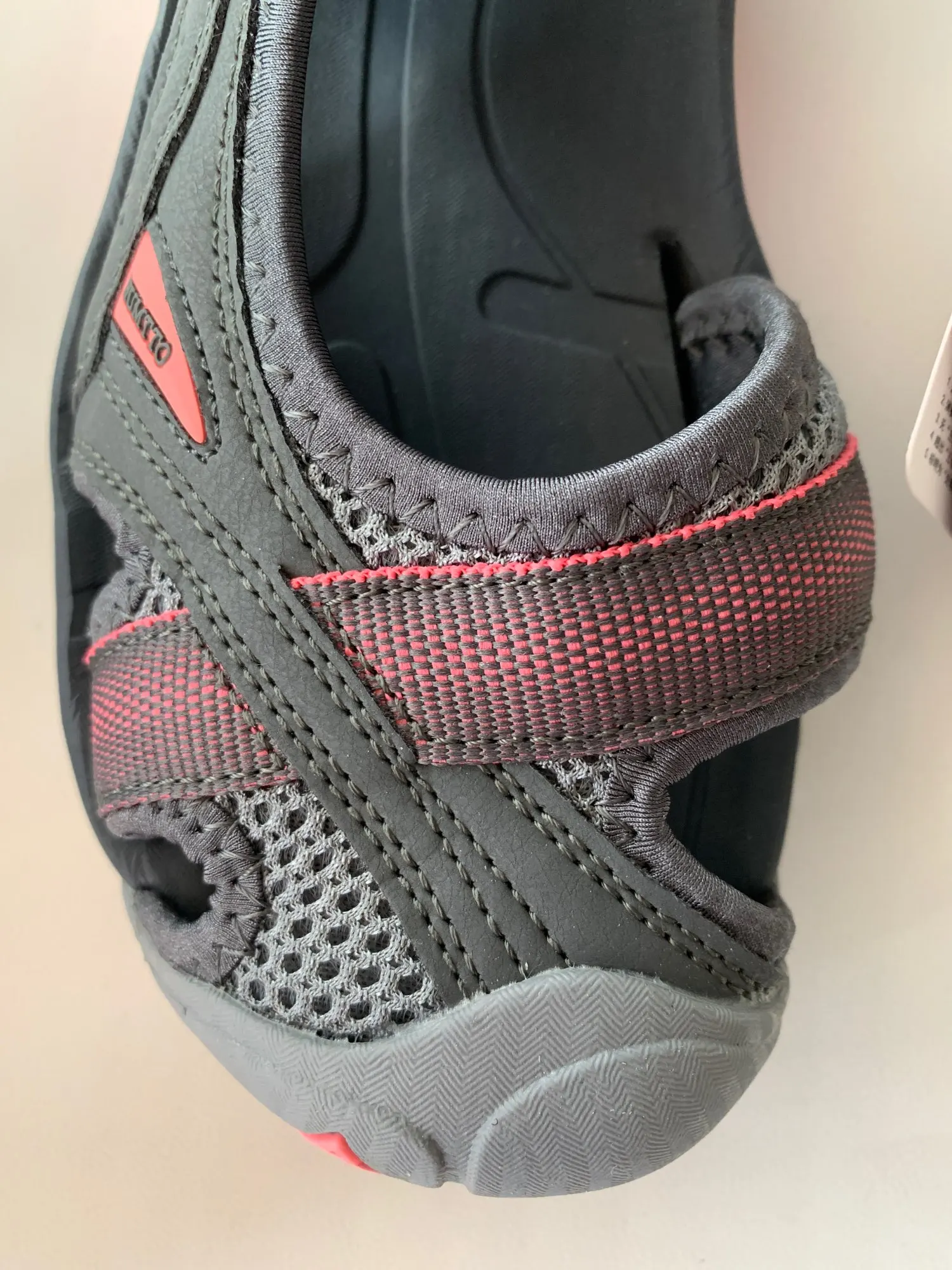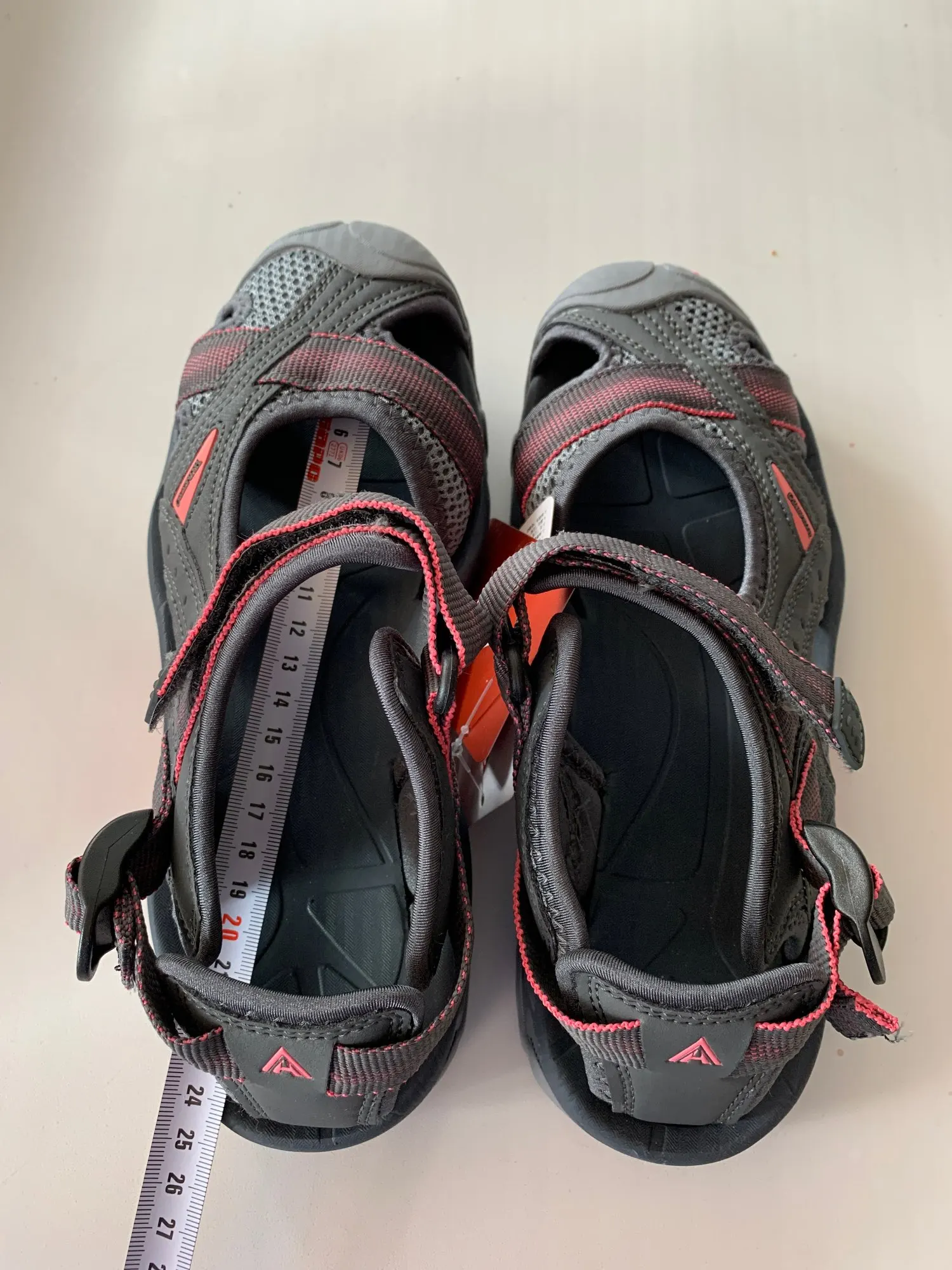 Я искала походные сандали не менее 2х лет и ни одни не подходили под мои критерии, и вот, наконец-то я их нашла :) ношу обувь 24-24,5 см, продавец сразу же помог определиться с размером: идеально подошёл US7-EUR39. Сандали на широкую стопу, немного торчат с боков, но меня это не смущает - пятка регулируется, можно подтянуть, нога не болтается. Выполнены аккуратно, прошиты везде ровно, нитки не торчат, ноге приятно. ЛЕГКИЕ. Цвет оказался чуть темнее, чем на картинке, но это тоже не проблема. Изначально цвета, который я выбрала, не оказалось моего размера, продавец предложил другие варианты и положил носочки в подарок :) безмерно рада покупке и горячо рекомендую этого продавца! :) до Томска дошли где-то за 2 недели.