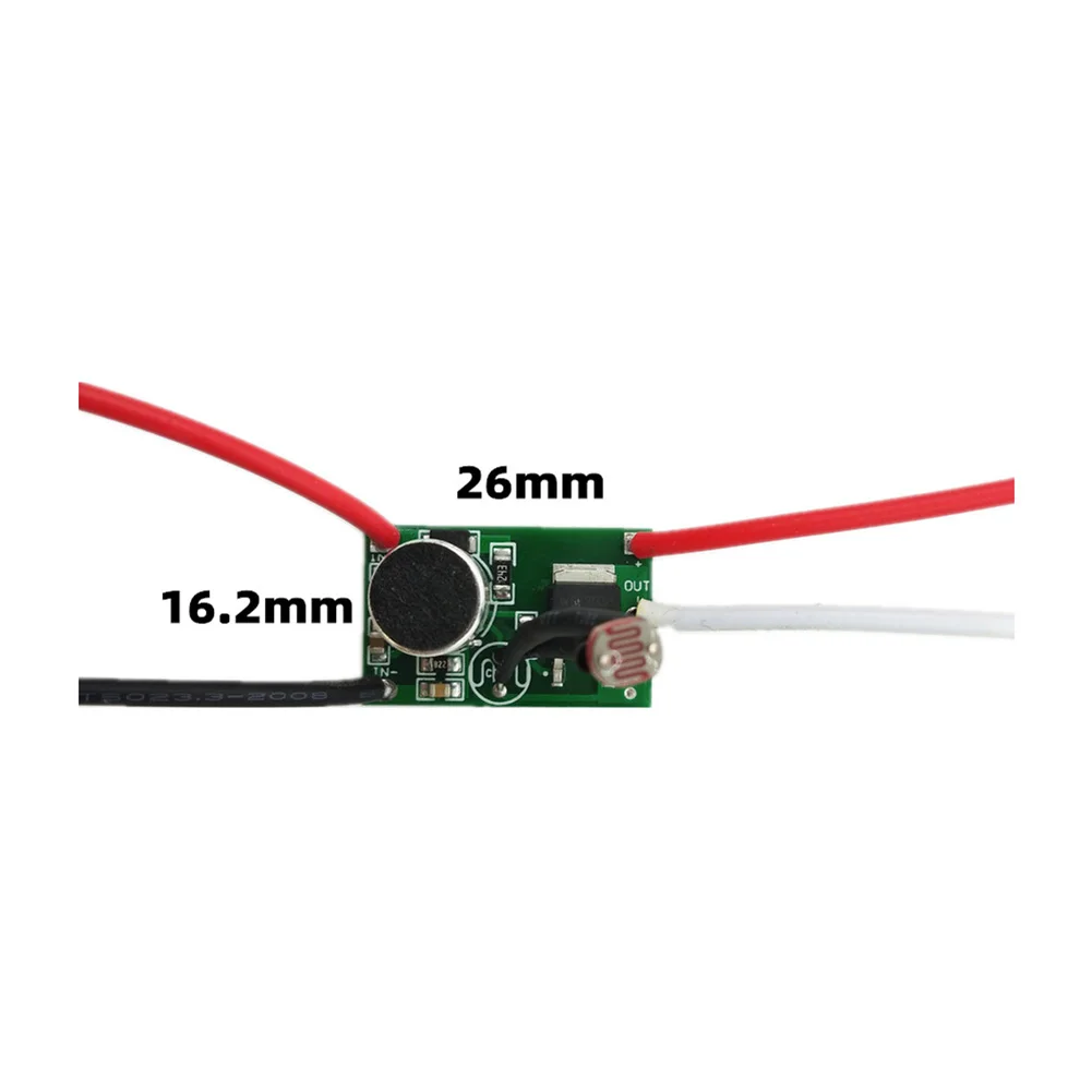 Продукт имеет Фоточувствительный резистор. Если в окружающей среде есть светильник, управление звуком недопустимо. Только в темной среде мы можем контролировать его. Фоточувствительный резистор можно контролировать 24 часа в сутки и ночью, обернув его в черный цвет.
