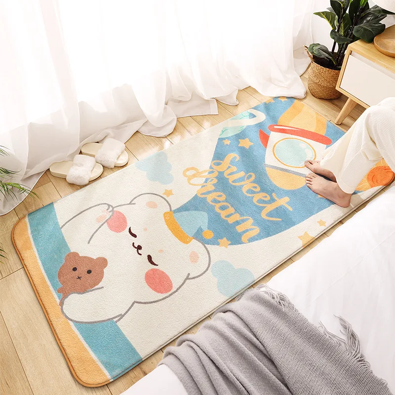 Мультяшный креативный длинный ковер для спальни, сверхплотный пушис...