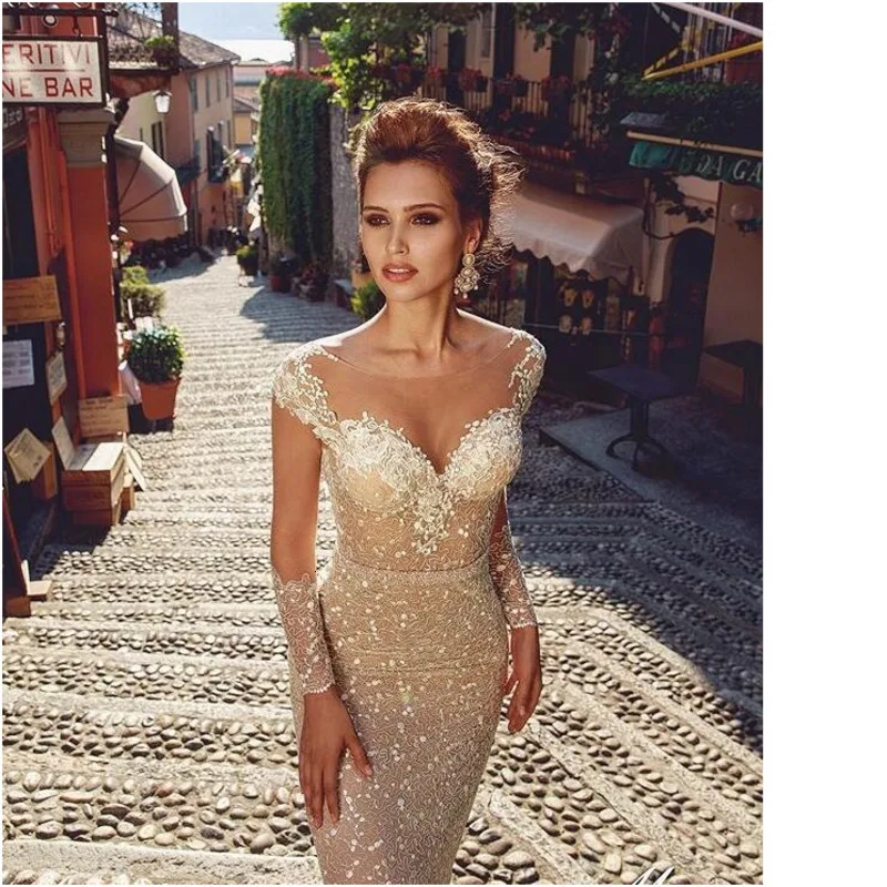 Элегантные кружевные свадебные платья с длинным рукавом и аппликацией, вечерние платья 2019