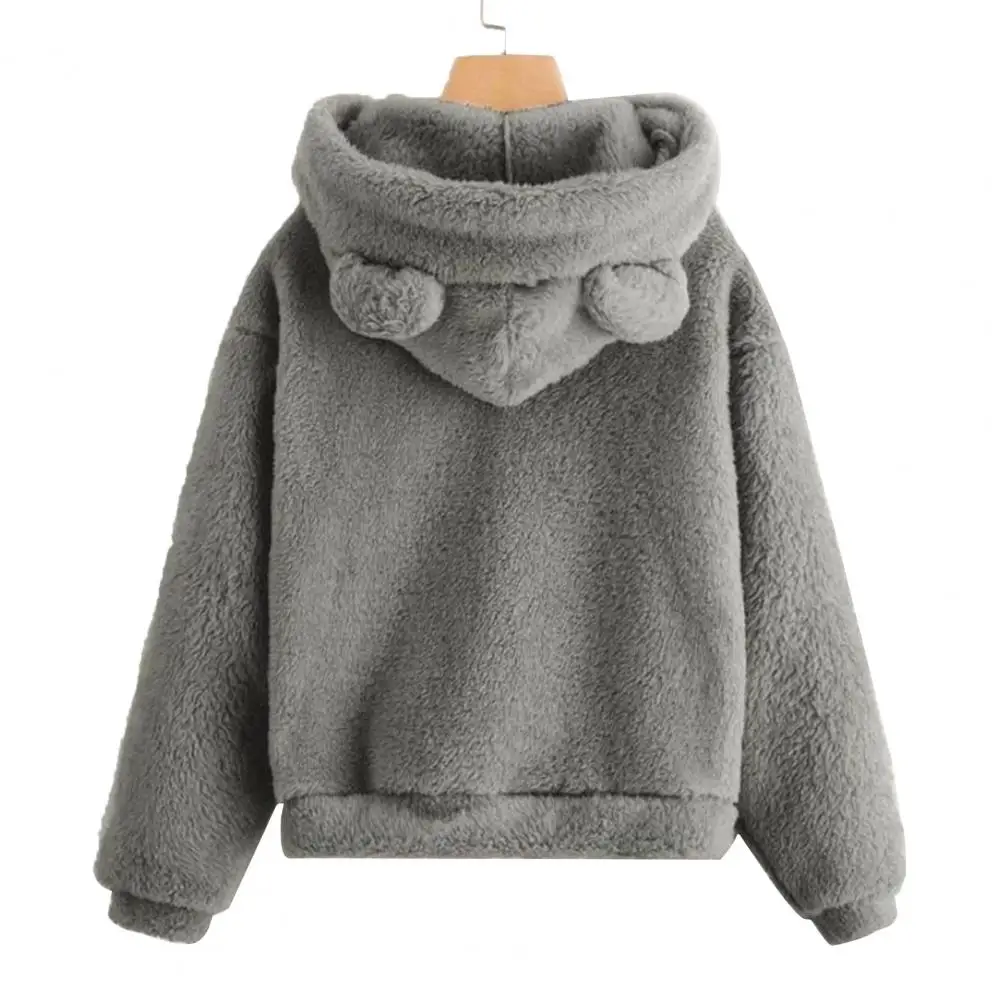 Толстовка Женская осенне-зимняя с капюшоном, с длинными рукавами и кроличьими ушками, плюшевая, теплая, повседневная, размера плюс