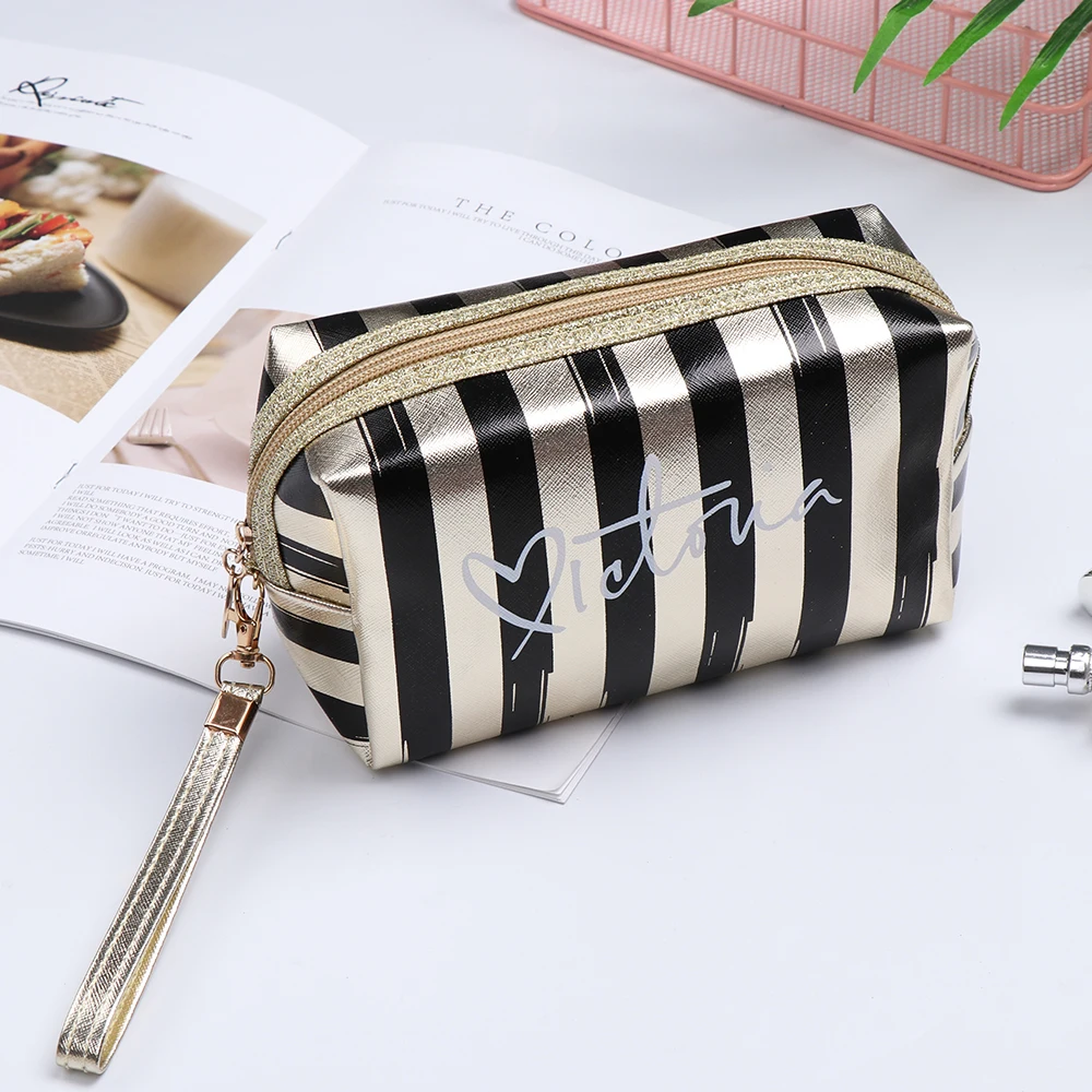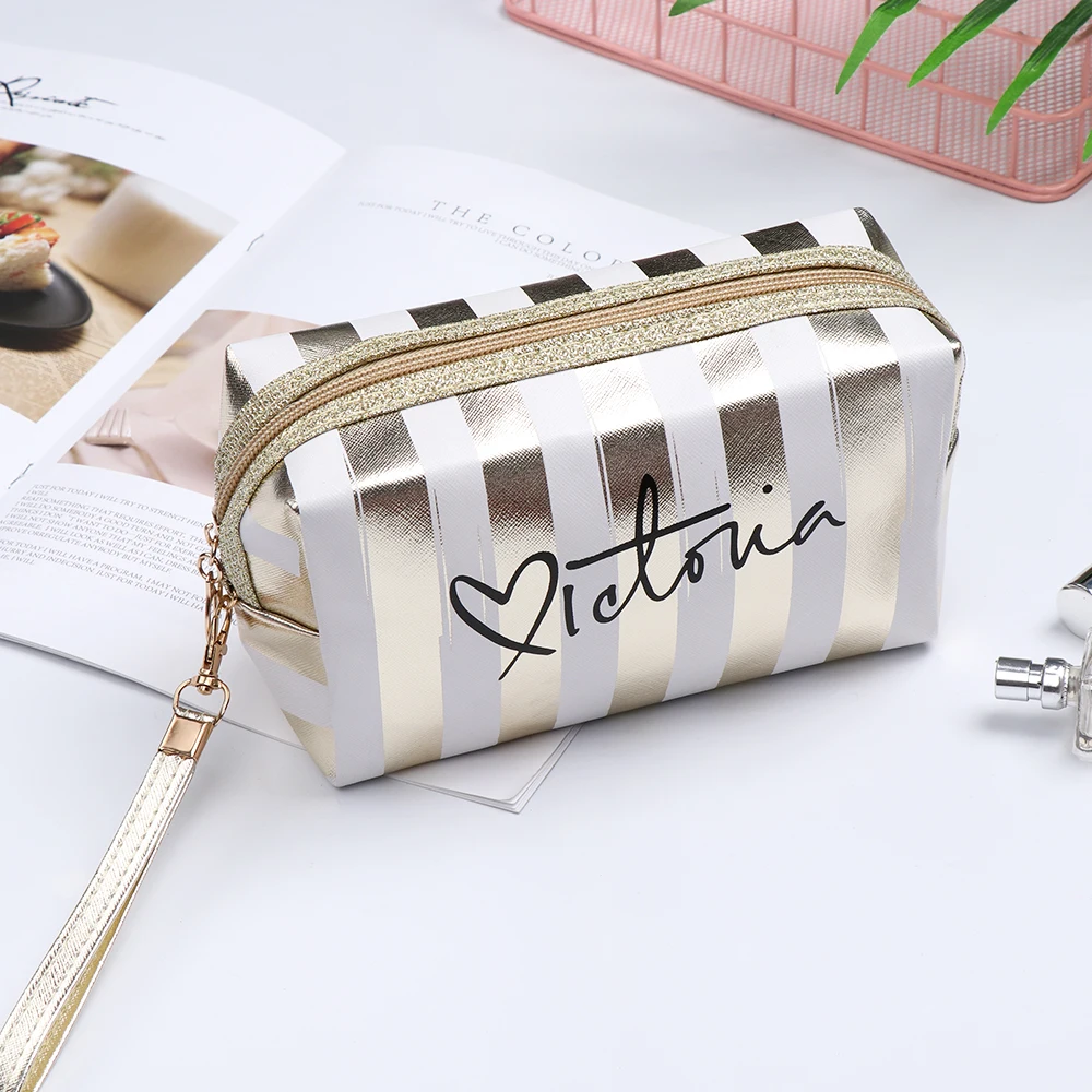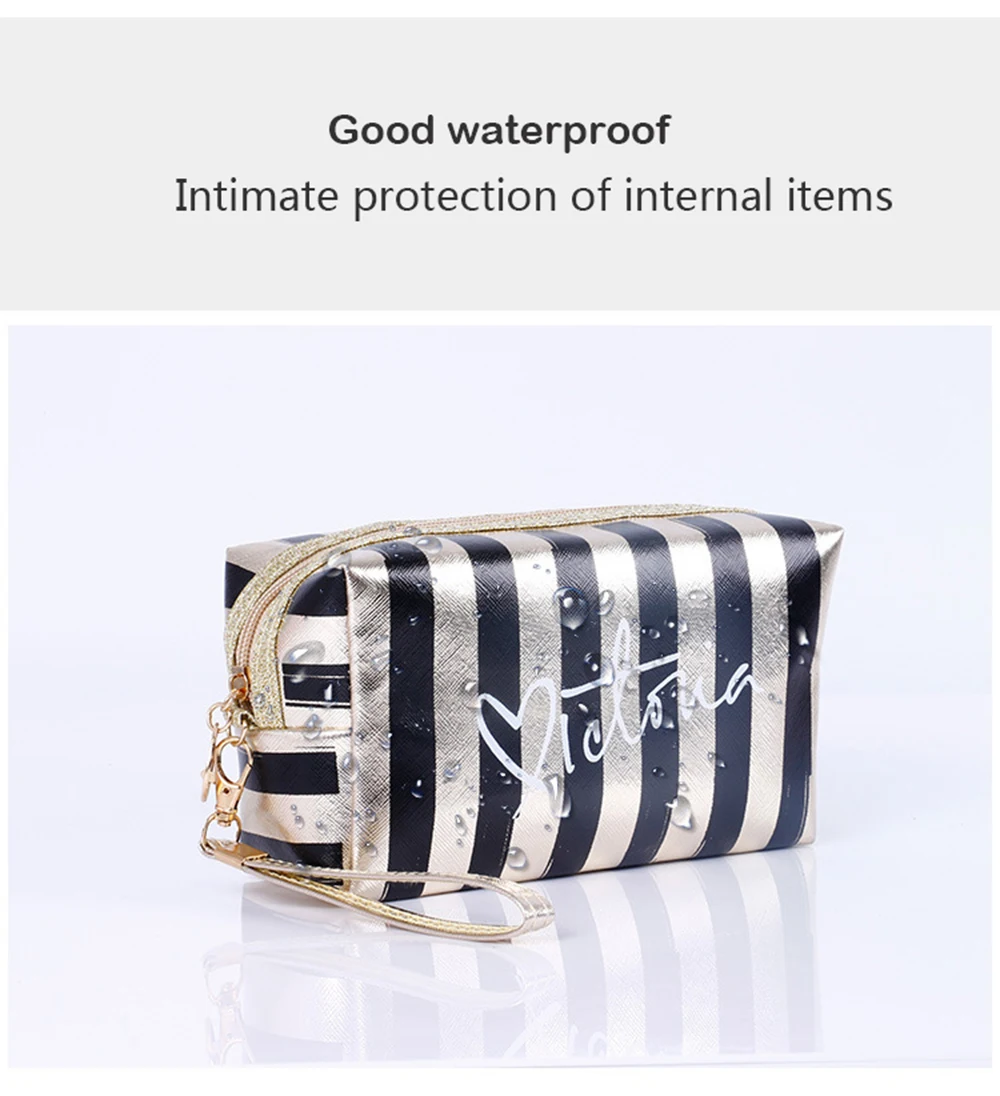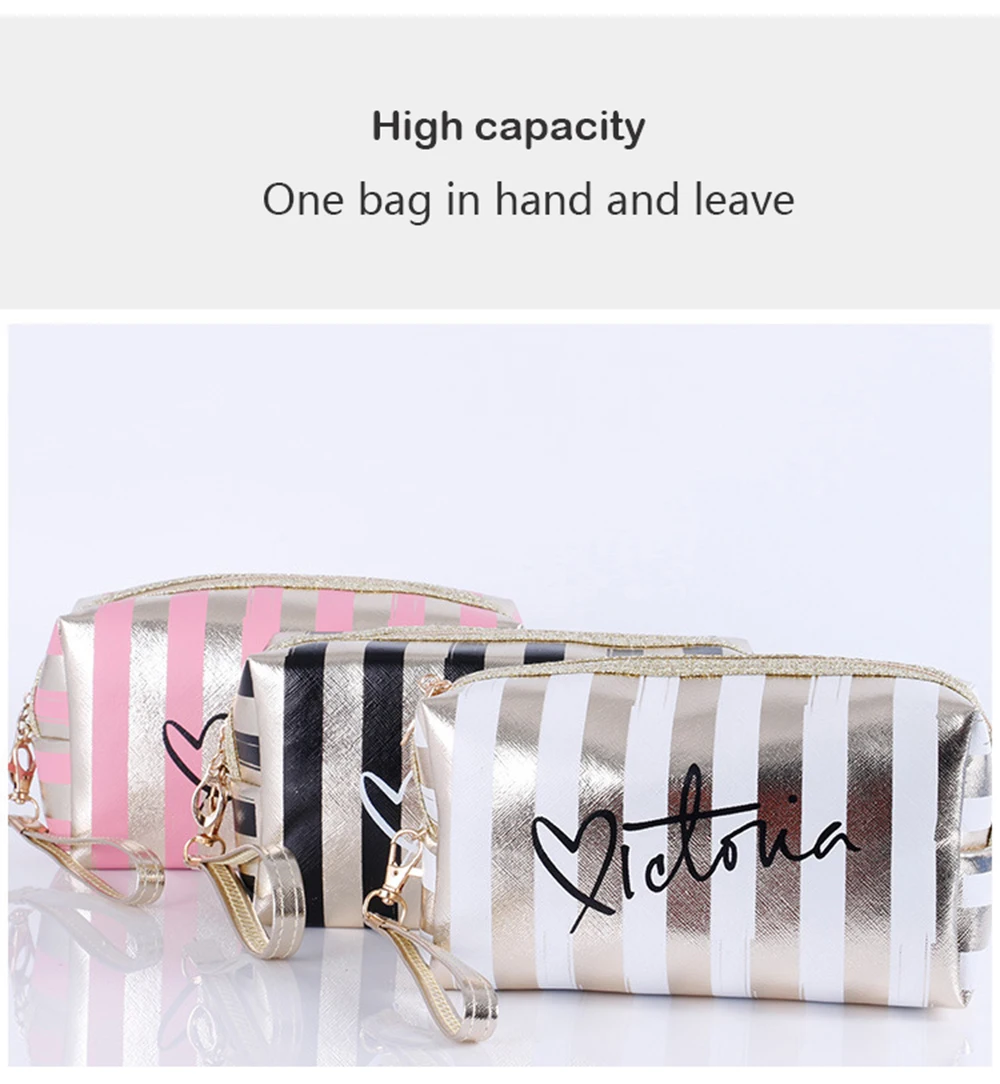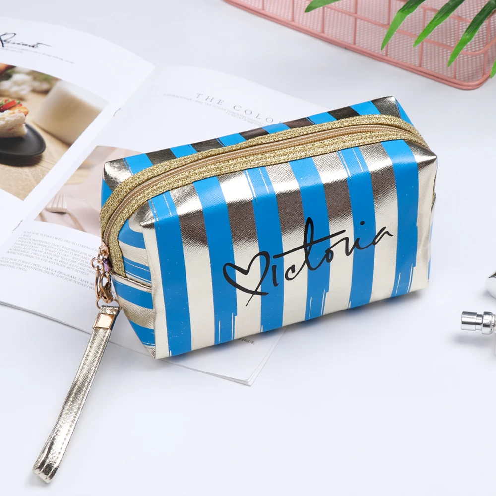 Женская сумка для косметики Buylor, водонепроницаемая сумка для лазерного макияжа, полосатая платиновая сумка для косметики, чехол для путешествий, Лидер продаж