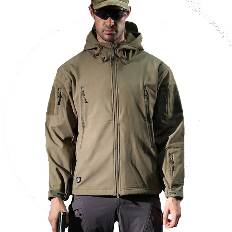 Камуфляжная тактическая куртка из мягкой кожи акулы, Мужская Флисов...