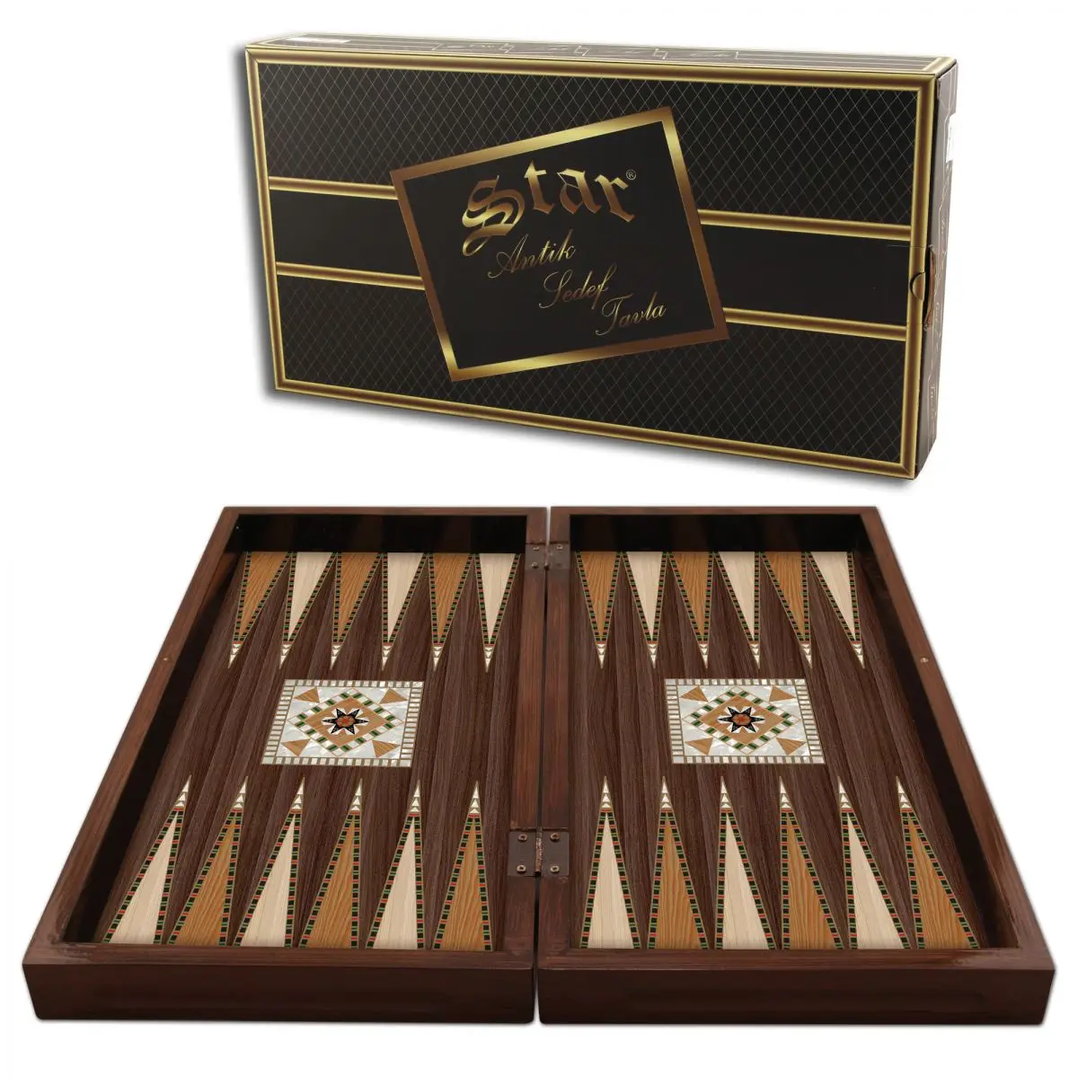 Наслаждайтесь игрой в нарды дома, в офисе и в любом месте. Вы можете использовать Антикварные Деревянные Нарды Hatem в течение многих лет с его высококачественной внешней поверхностью и материалом с деревянным рисунком и камнями.