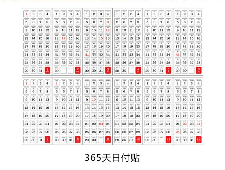Самоклеящиеся украшения для дневника, календарь на 12 листов, 365 дней