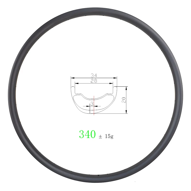 340g SL 29er MTB XC 34 мм ассиметричная бескамерная клинчерный обод из углеродного волокна 20 мм Глубина 28 мм внутренняя UD 3K 12K 24H 28H 32H 29in горное колесо