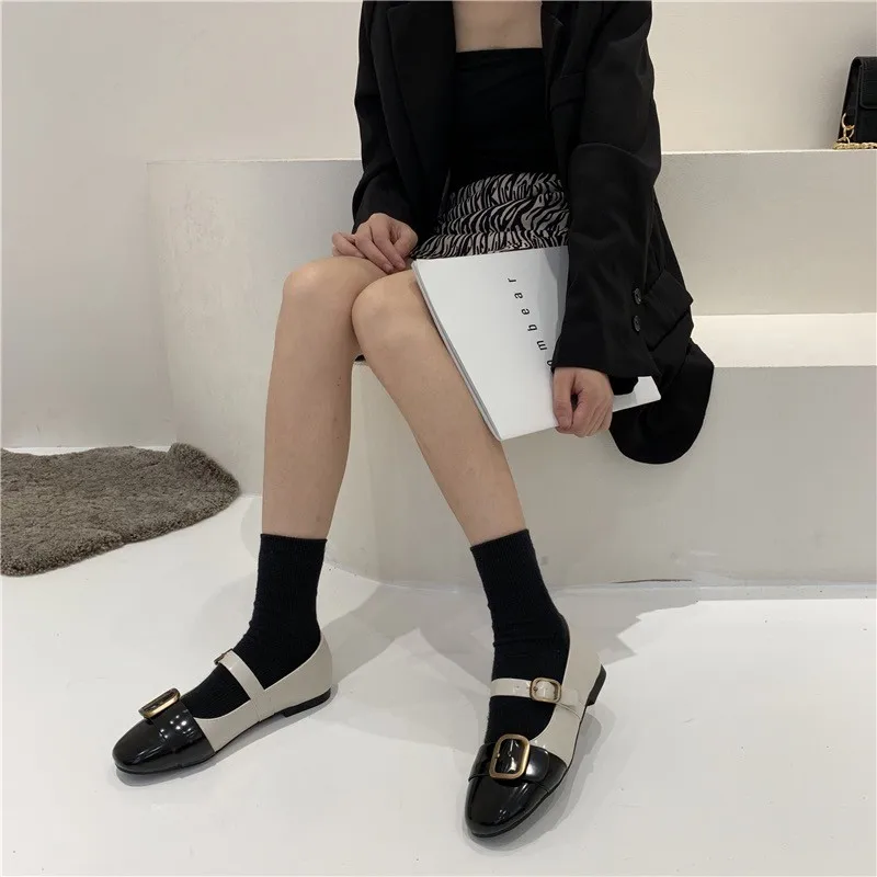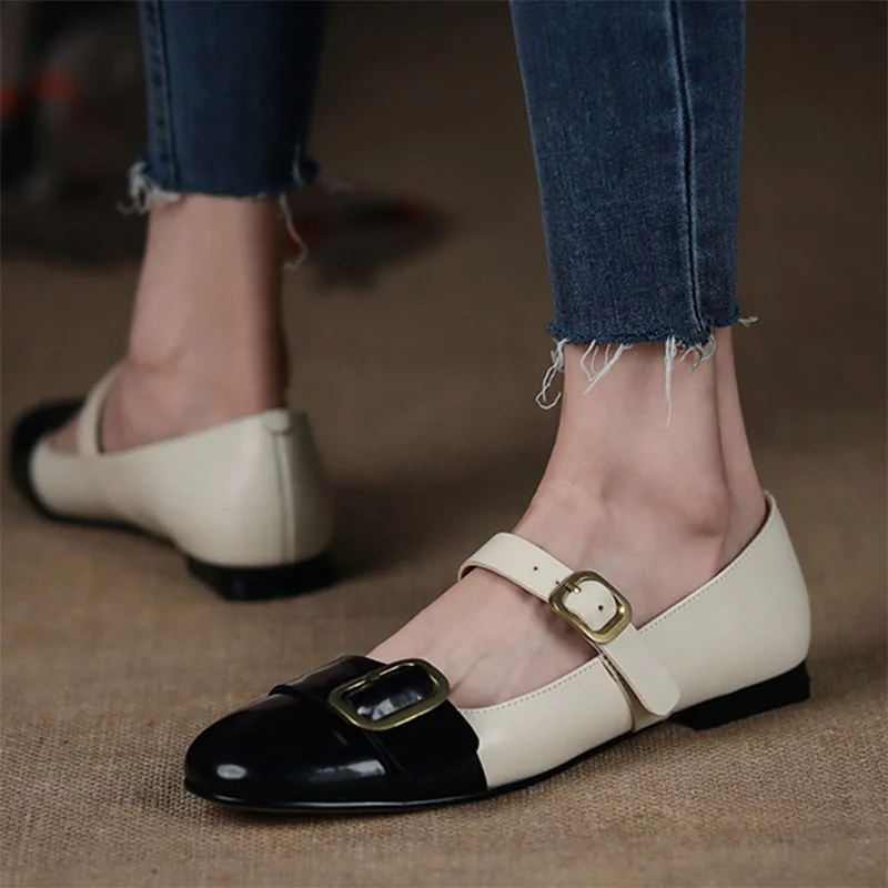 Женские туфли мэри джейн; Лолита в стиле пэчворк; Туфли в стиле ретро с пряжкой на плоской подошве; zapatos mujer; Весна-Осень 2021; 8954N