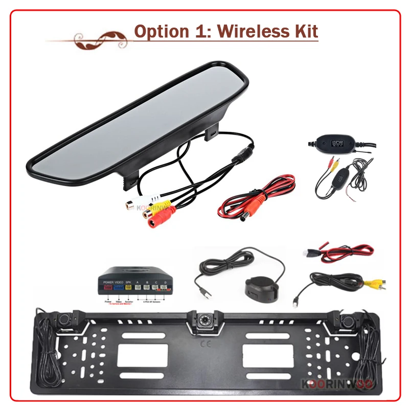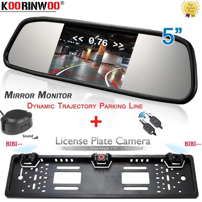 Видеосистема Koorinwoo, Беспроводная Автомобильная камера заднего вида с цифровым монитором HD 5 дюймов, датчик парковки, рама для номерного знака