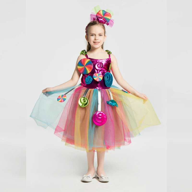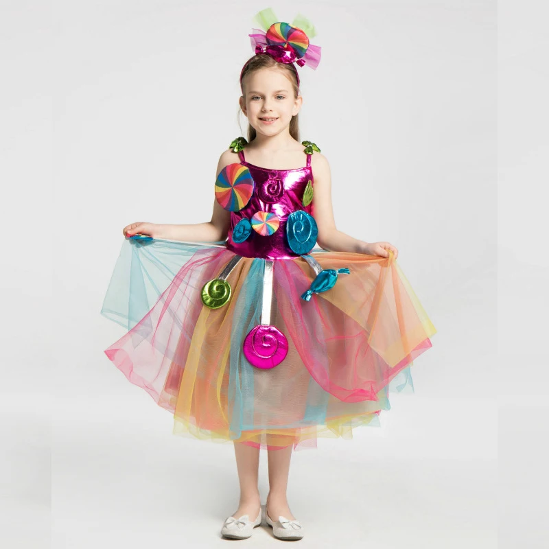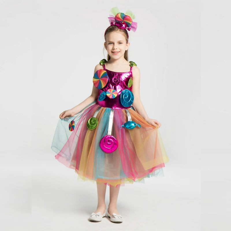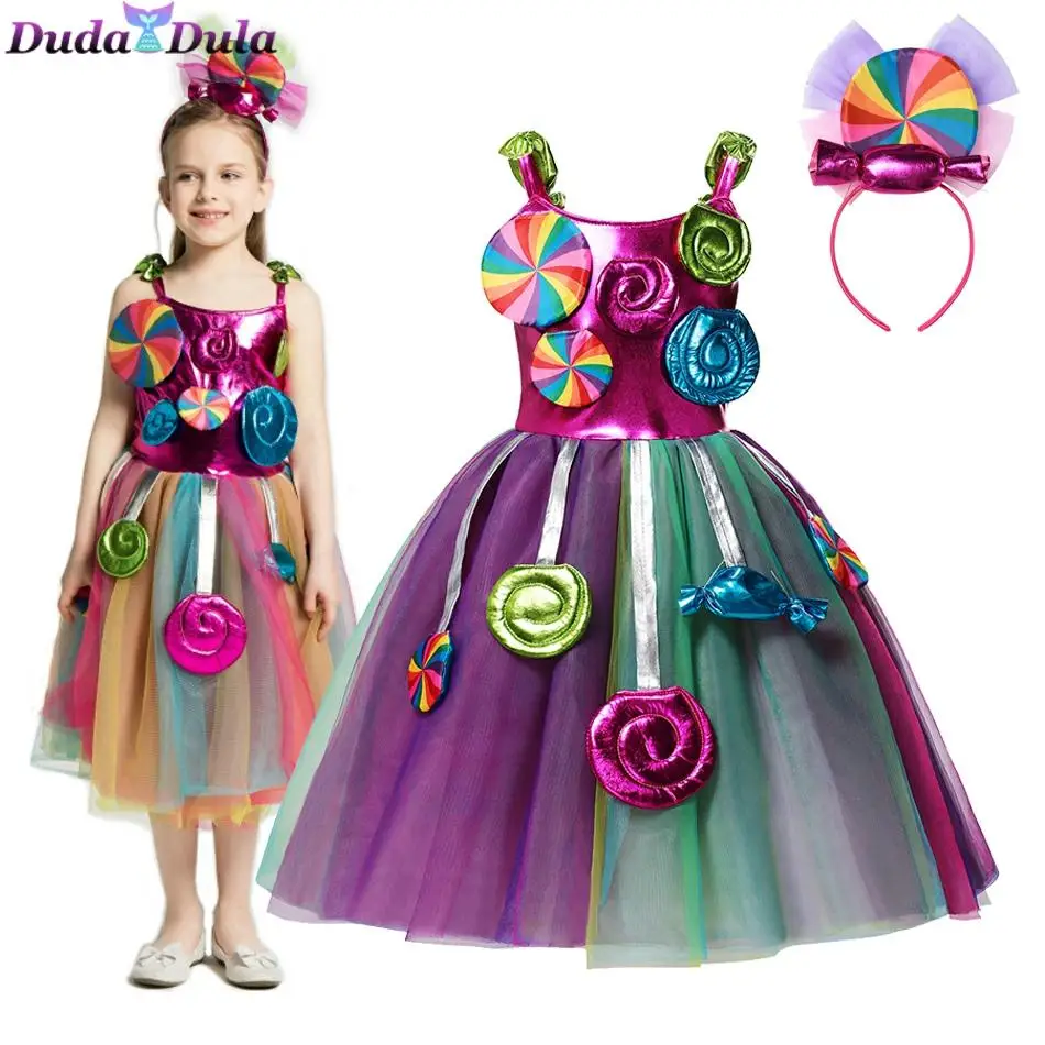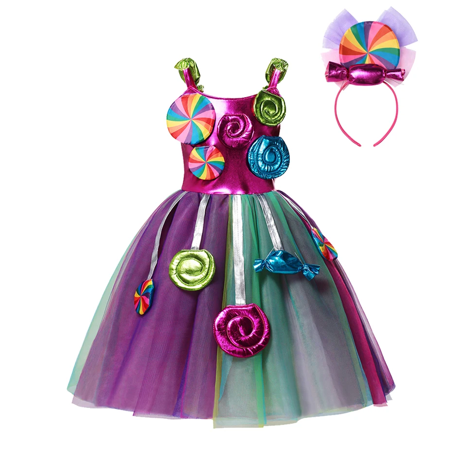 Привлекательного леденцового Одежда для девочек; Сезон лето; Стиль Лолита; Платье для девочек, нарядное платье для девочек на день рождения вечерние нарядное Радужное платье с повязкой на голову, платье для выпускного вечера