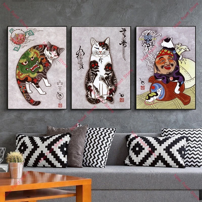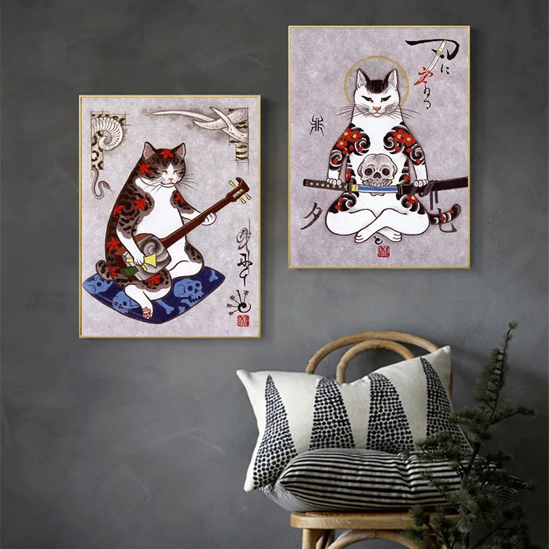 Японский плакат с татуировкой самурая кошка ретро искусство Гостиная Спальня украшение живопись плакаты Холст Картина в скандинавском стиле