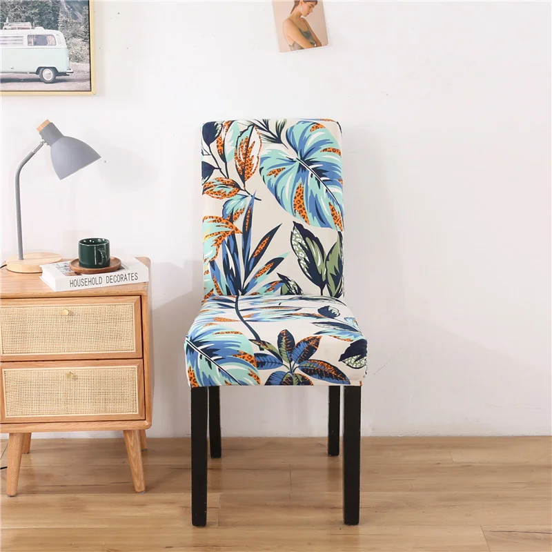 Растягивающийся чехол для обеденного стула с принтом из натуральных листьев, съемный эластичный чехол с высоким задним сидением для отеля, банкета, офиса