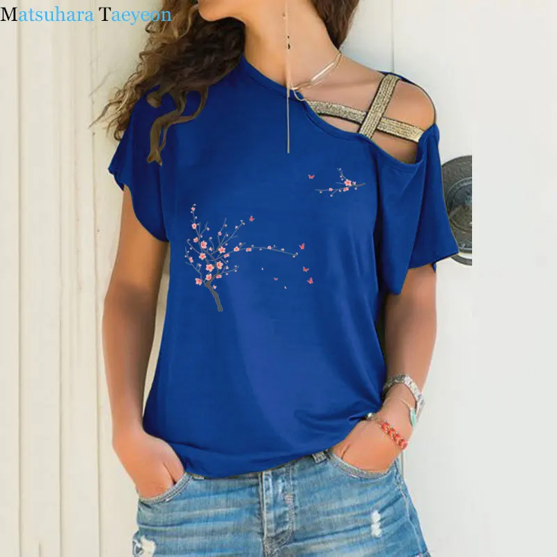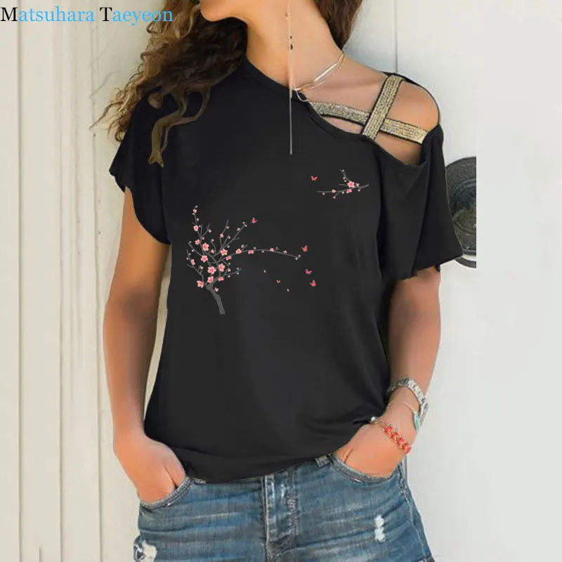Женская футболка в китайском стиле, летняя футболка с коротким рукавом и перекрестными цветами