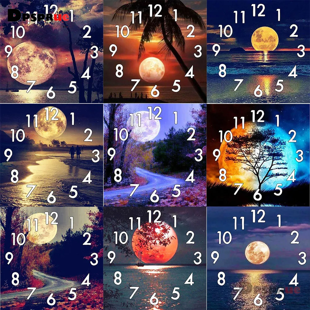 Полноформатная алмазная живопись Dpsprue, вышивка крестиком с часовым механизмом, мозаика 5D сделай сам, квадратная, круглая, луна, 3d вышивка, подарок HG120