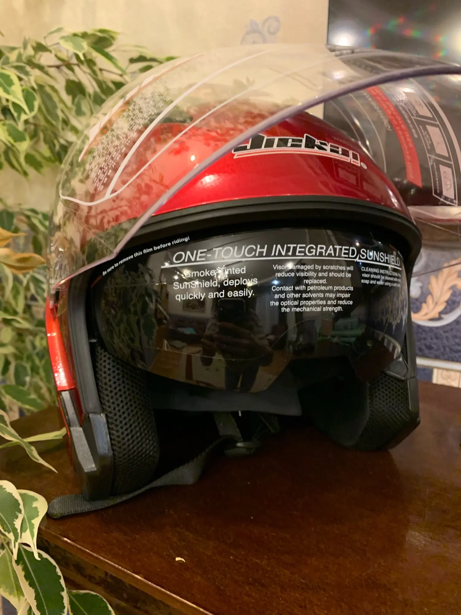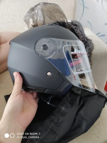Доставка всего две недели до пункта выдачи в пятёрочке) немного пахнет, но быстро думаю выветрится. Пришёл в плёнке с пупырками. Конечно это просто декоративный шлем для дпс, наврятли защитит, но за 2 тысячи супер. Ещё бы не было лейблов, вообще красота была бы