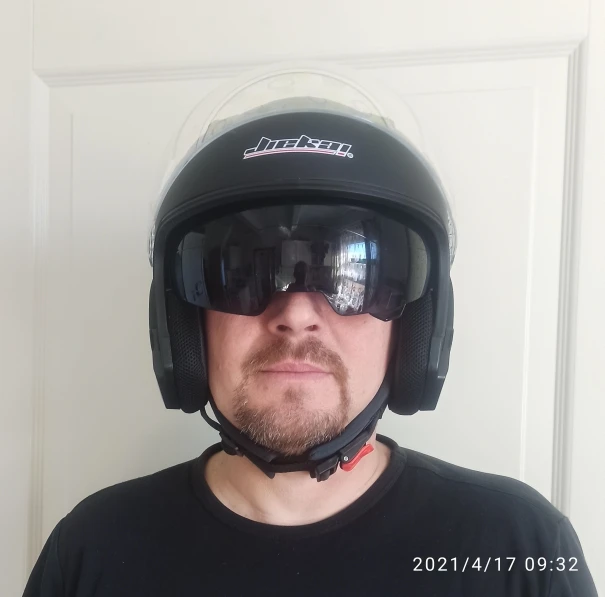 пришло быстро. упаковка отличная. пленка пупырка три слоя и два обычной. получил целый, без царапин... размер подошёл. боялся темное стекло поверх очков не опустится... зря боялся... очень лёгкий...
