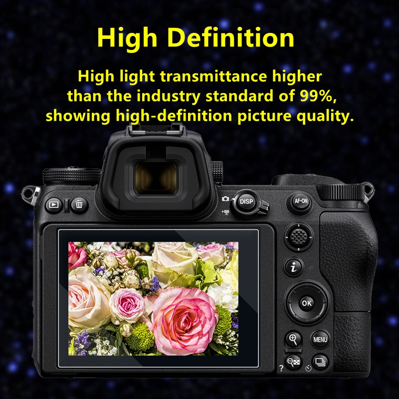 Совместим с емкостным сенсорным экраном, камерами с откидным экраномТвердость: 9HПрозрачность: >96%Толщина: 0,3 мм +/-0,05 ммАдсорбция: 130 г/см2Сила Imapct: 12 кг/см2Изготовлен из оптического стекла с высоким коэффициентом пропускания светильникАнтибликовая оправа без пузырьков по краюЗащита от взрыва, пыли, пота, старения Подходит для:NIK0N Z6 Z7 Z6II Z7II Особенности:1. Без липких следов. В отличие от других протекторов экрана, когда люди используют Самоклеящуюся протектор экрана для установки на экран камеры, если пользователь хочет удалить его, не оставляет липких следов.2. Самоклеящиеся изделия. Самоклеящаяся защитная пленка для экрана камеры. Легко и удобно для пользователей.3. Без пузырей. Самоклеящаяся защитная пленка идеально подходит для экрана камеры, не оставляет пузырьков под протектором. Сделайте так, чтобы экран камеры более четко отображал изображение.4. Стекло высокого качества. Стекло взрывозащищенное, антибликовое, устойчивое к царапинам, Термостойкое.5. Ультратонкий дизайн. Ультратонкий протектор. При установке он практически такой же, как и экран камеры, без протектора.6. Приятное прикосновение и визуальный эффект для емкостного экрана. Превосходное мастерство Антибликовой оправы значительно увеличивает четкость обзора. Поверхность протектора экрана хорошо отполирована и покрыта нанометром, что позволяет избежать оставления отпечатков пальцев на защитной пленке. Он может не только обеспечить наилучшую защиту экрана камеры, но и гарантировать идеальный пользовательский опыт.Примечание: не поддерживает резистивный экран, при приклеивании Сенсорная Функция отсутствует. Пожалуйста, подтвердите вашу камеру или свяжитесь с нами перед оплатой.